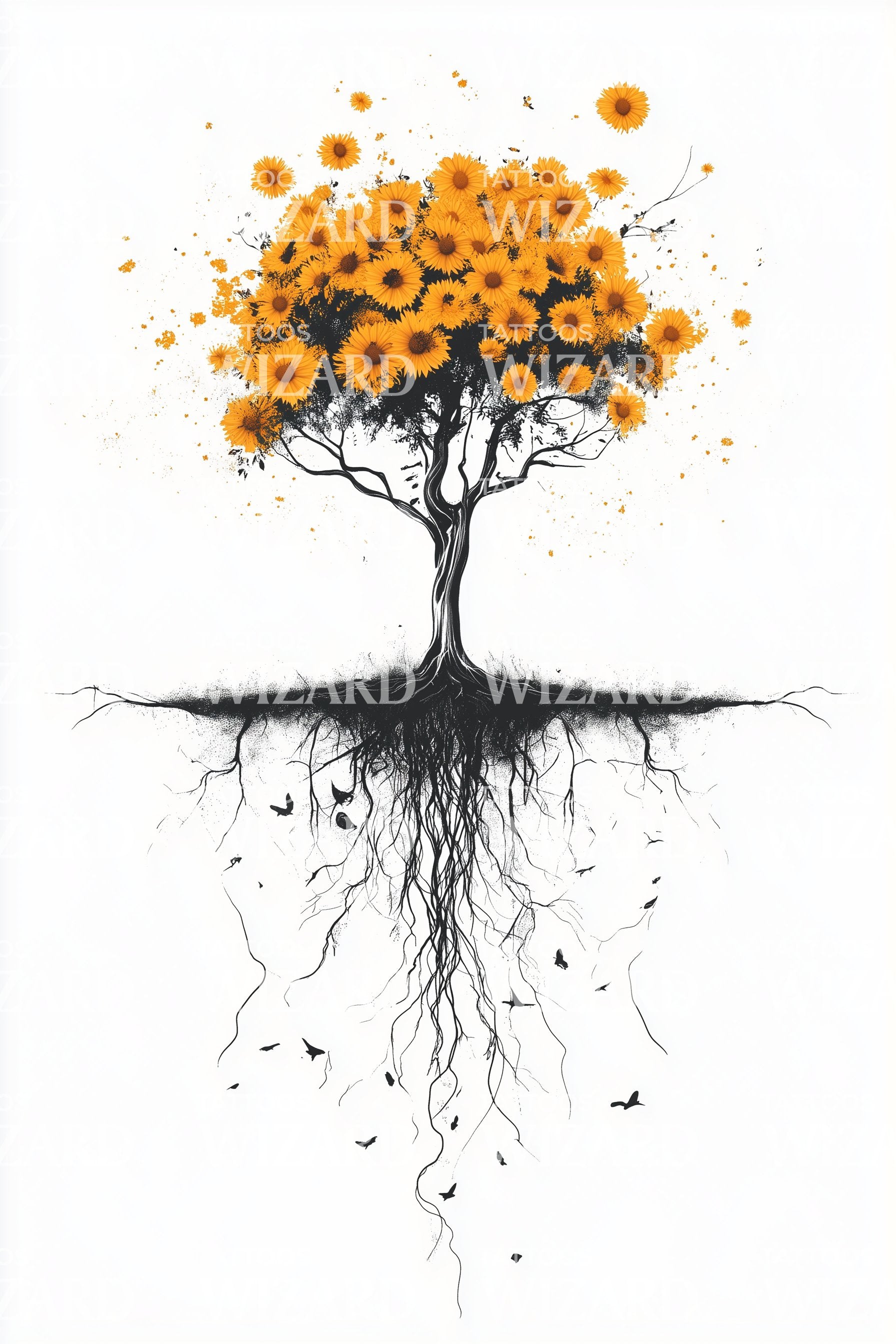 Desenho de Tatuagem de Árvore de Girassol Radiante
