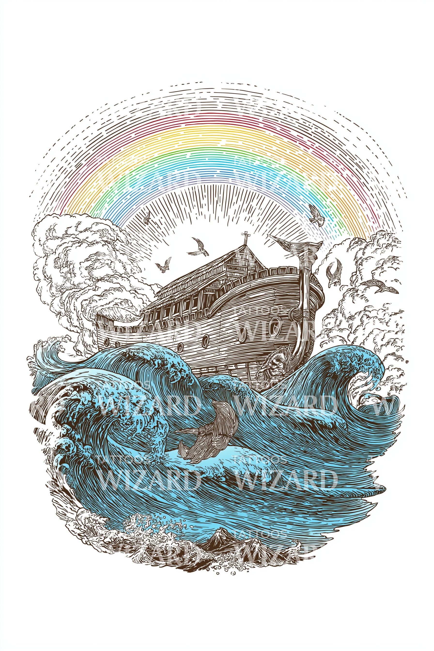 Mergulhe neste design de tatuagem inspirado no vintage que captura a essência da fé e da esperança. Lembrando uma antiga gravura, esta arca ilustrativa em tons sépia apresenta detalhes intrincados. Transporte-se no tempo e preencha a sua tela de pele com um toque de beleza nostálgica. Um testemunho de resistência, é simplesmente intemporal.