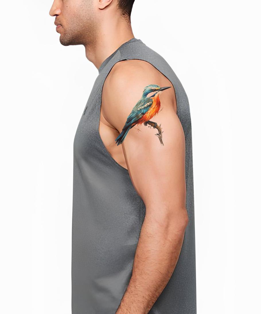 Desenho de Tatuagem de Pássaro Martim-pescador em Aquarela