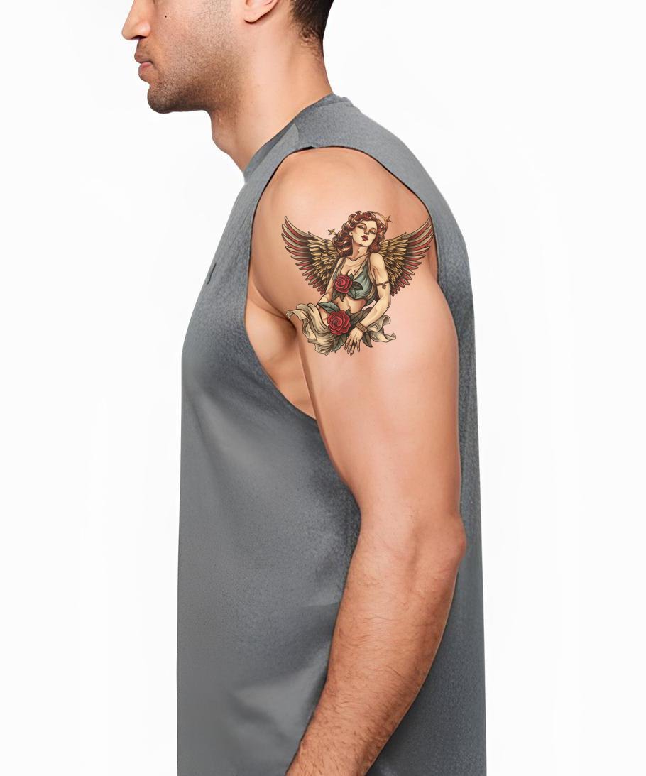 Exiba o seu encanto feminino com este Design de Tatuagem Oldschool, apresentando uma mulher alada angelical, conferindo sensualidade e sedução. Uma estética vintage é perfeitamente integrada no seu charme intemporal, garantindo uma tatuagem cênica o suficiente para narrar a história da sua deusa interior.