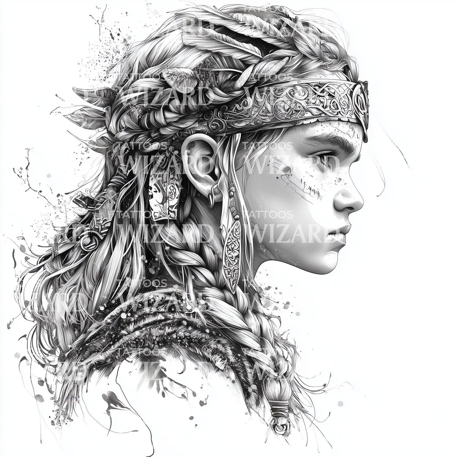 Jovem Guerreiro Viking com Espírito de Guerreiro Ideia de Tatuagem
