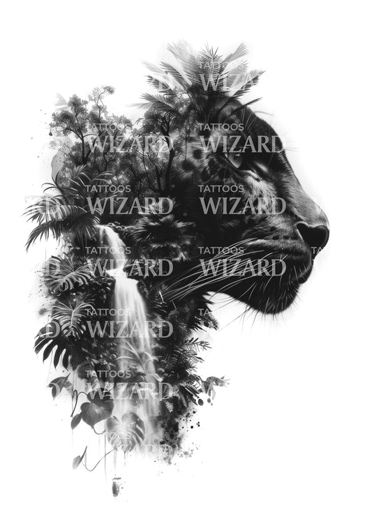 РаспродажаТату-дизайн ягуара в амазонских джунглях