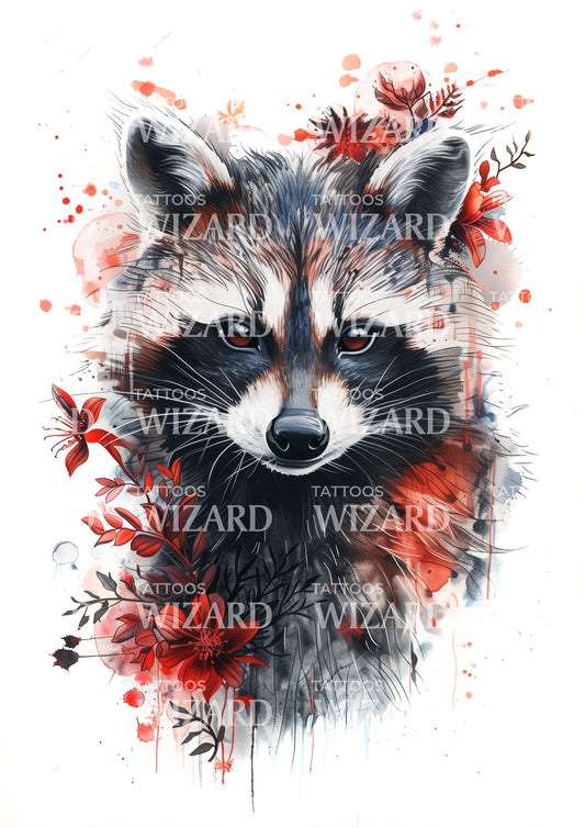 РаспродажаИдея татуировки с девичьим енотом и цветами