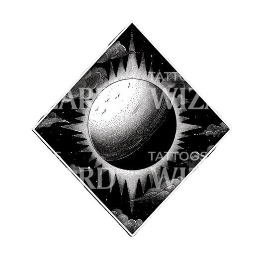 Татуировка в стиле олдскул с изображением солнечного затмения