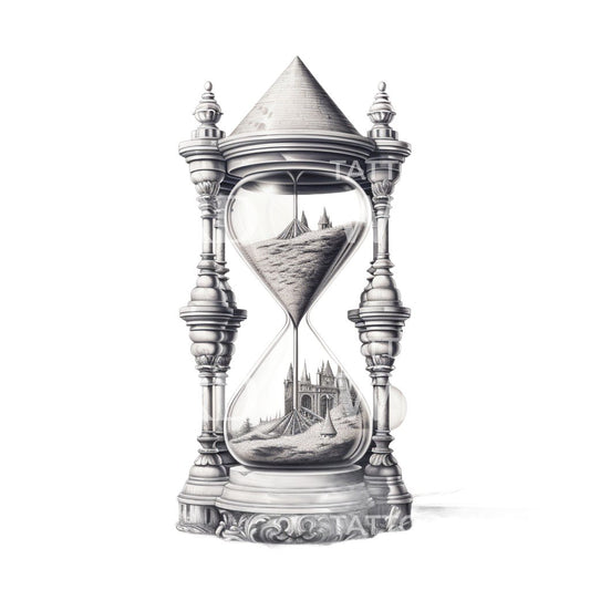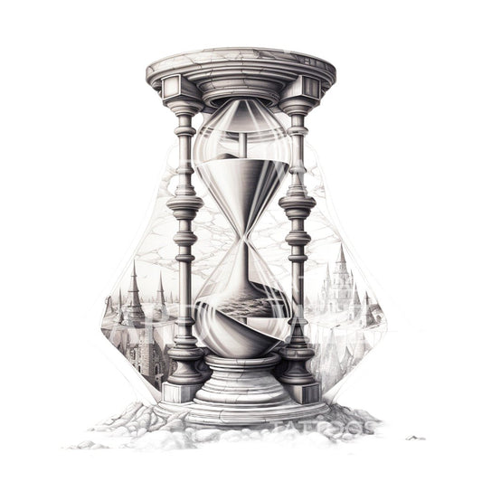 Сложный тату-дизайн с песочными часами и древним городомОбычная цена $9.90 USDОбычная цена$16.00 USDЦена со скидкой $9.90 USDРаспродажа