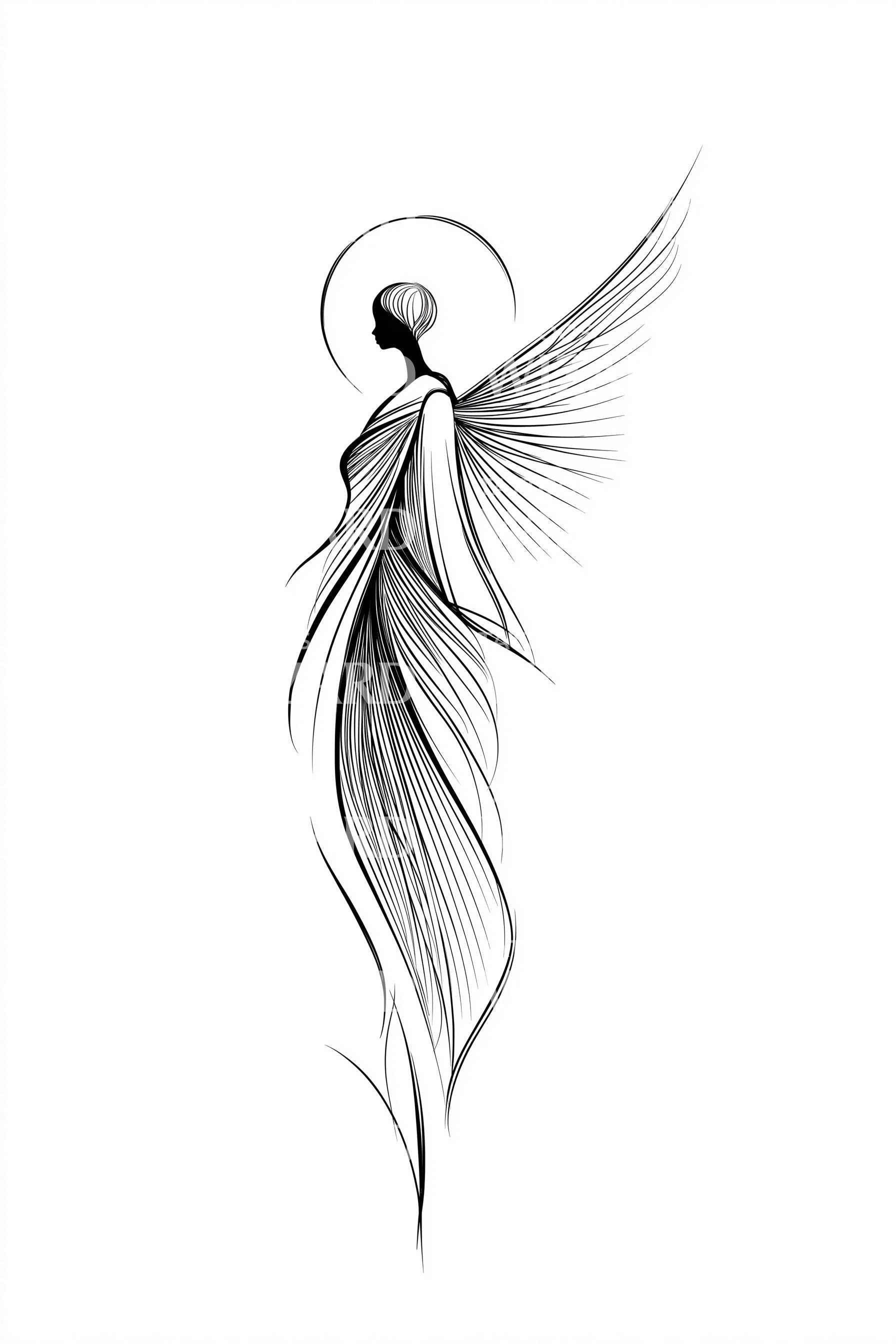 Ascending Feather Angel Tattoo Design
