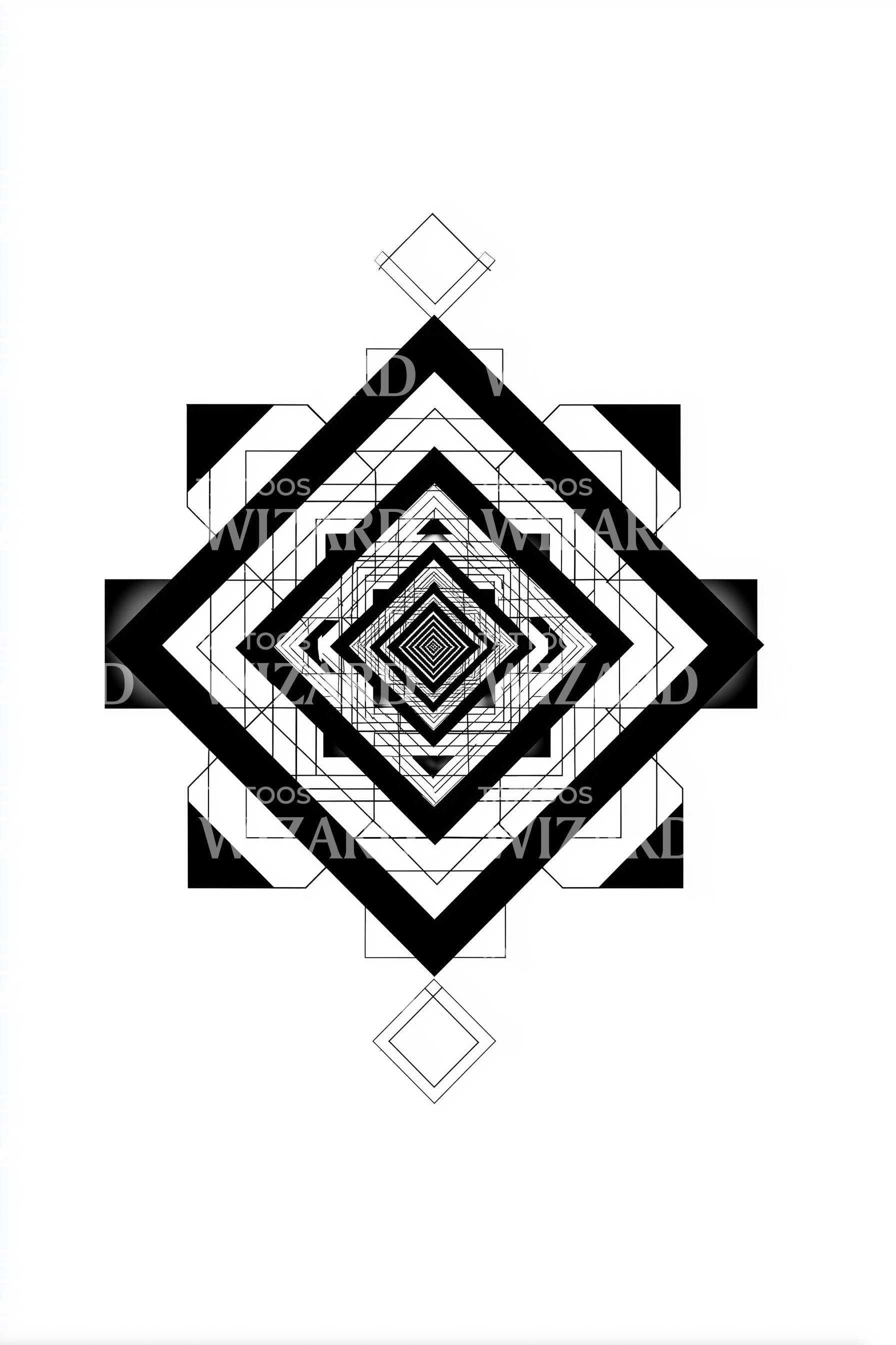 Смелый тату-дизайн в стиле ацтеков с квадратом