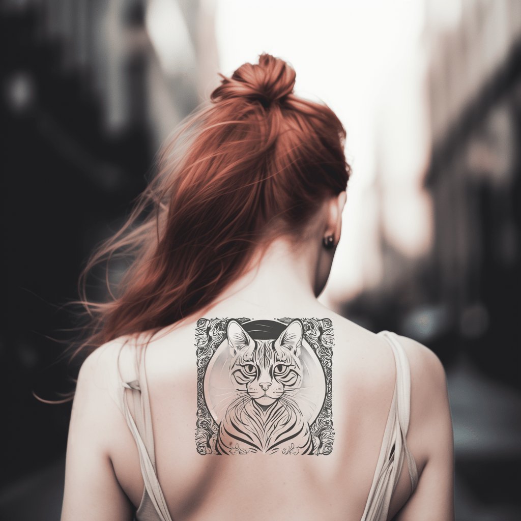 Полюбуйтесь этим поразительным черно-серым иллюстративным тату-дизайном с соблазнительной бенгальской кошкой. Исключительно детализированный, сложный узор, украшающий форму животного, создает потрясающий визуальный рассказ. Идеально подходит для любителей животных, этот дизайн символизирует независимость, грацию и тайну.