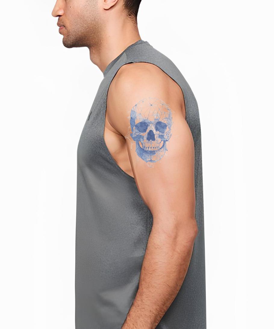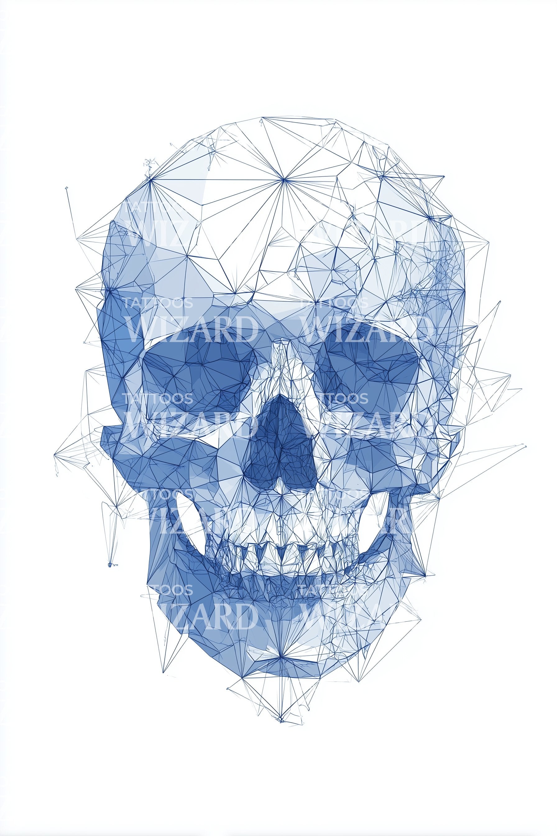 Освободите свою дерзкую сторону с нашим современным геометрическим дизайном татуировки! В центре внимания — гранёный полигональный череп, выполненный в ярком оттенке синего. Олицетворяя чёткие линии и углы, эта татуировка гарантирует современный стиль для смелого и продвинутого в моде человека. Идеально подходит тем, кто ценит искусство и нестандартный подход.