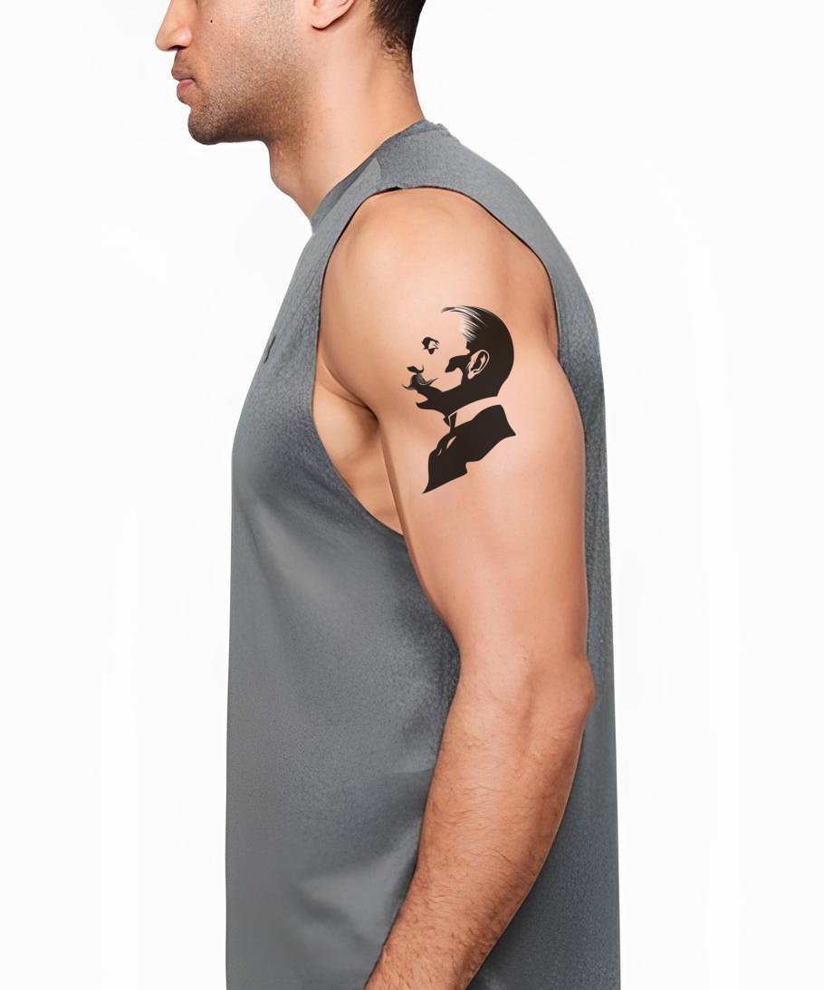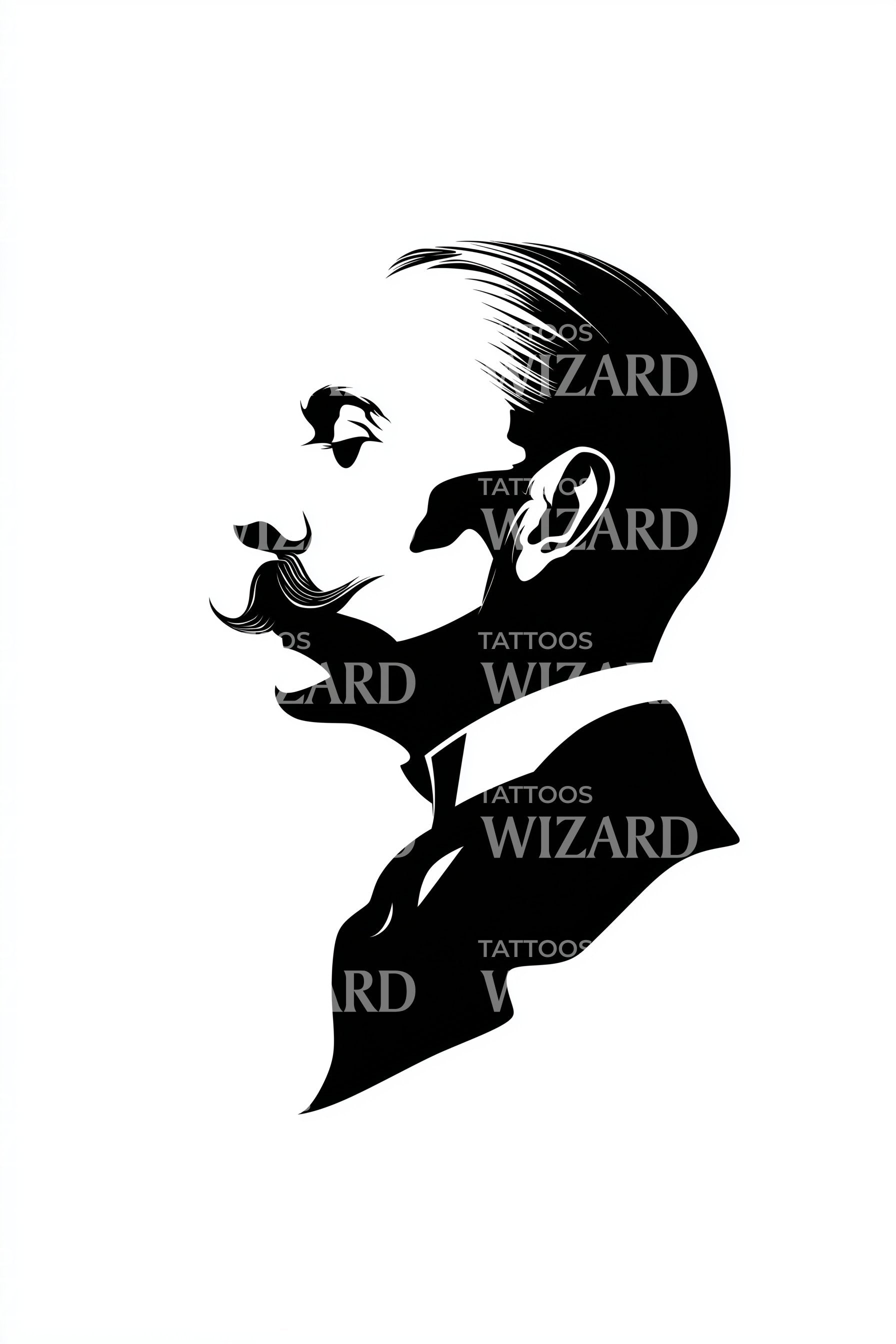 Это тату в стиле blackwork с винтажным вдохновением изображает классический портрет джентльмена. Парик и жабо отражают ушедшую, элегантную эпоху. Сочетание изысканности и стиля, этот бюст излучает атмосферу старомодного очарования. Идеально подходит для тех, кто ценит вечную классическую эстетику в своем тату.