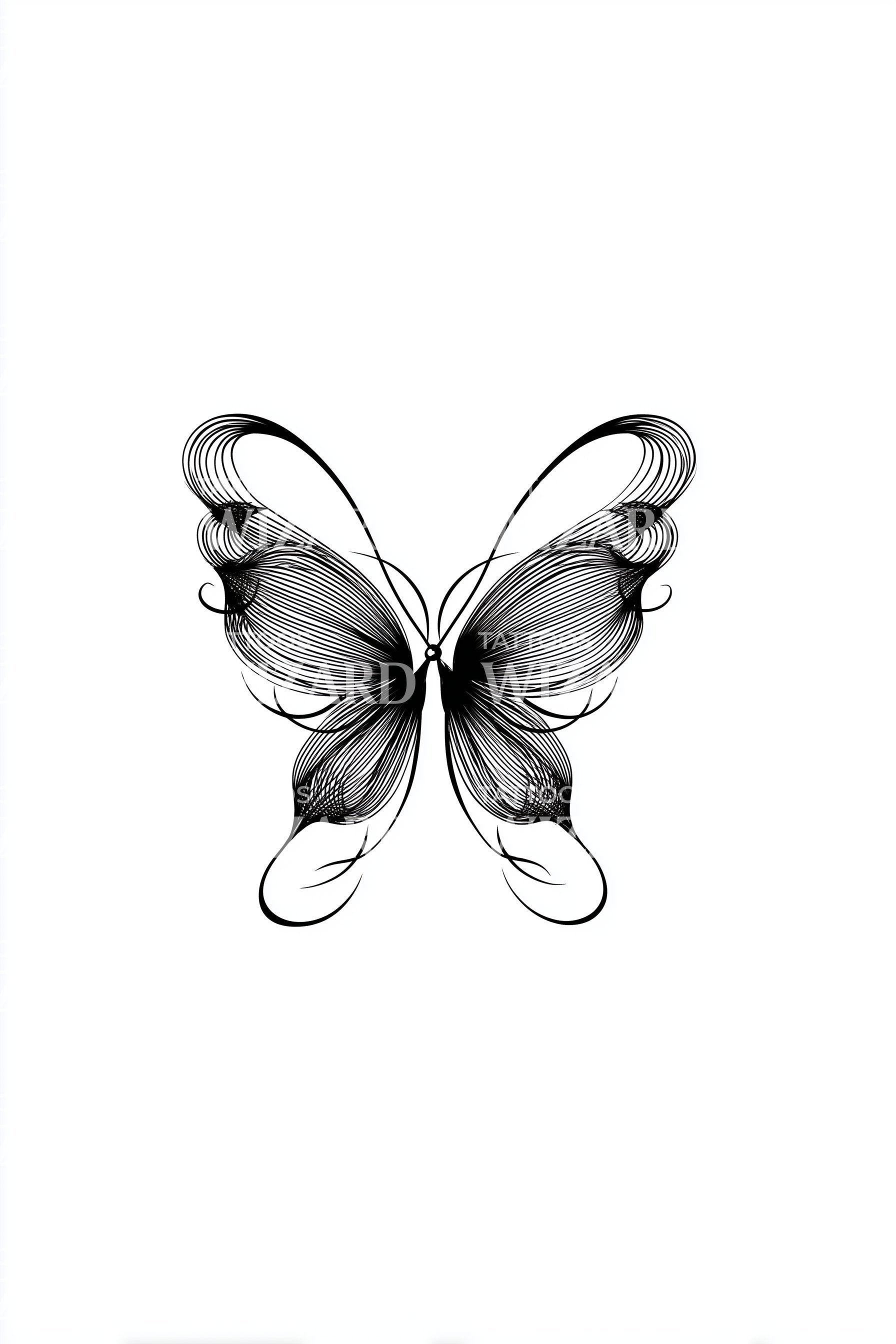 Fineline butterfly rendered in airy filament lines, symmetrical, with soft curls and luminous negative space. Symbolizes transformation, balance in nature, and resilient grace. Wears like an uplift of the heart. Ideal placements: sternum for centered symmetry, upper back for wingspan, forearm for intimate flow, nape for gentle elegance.