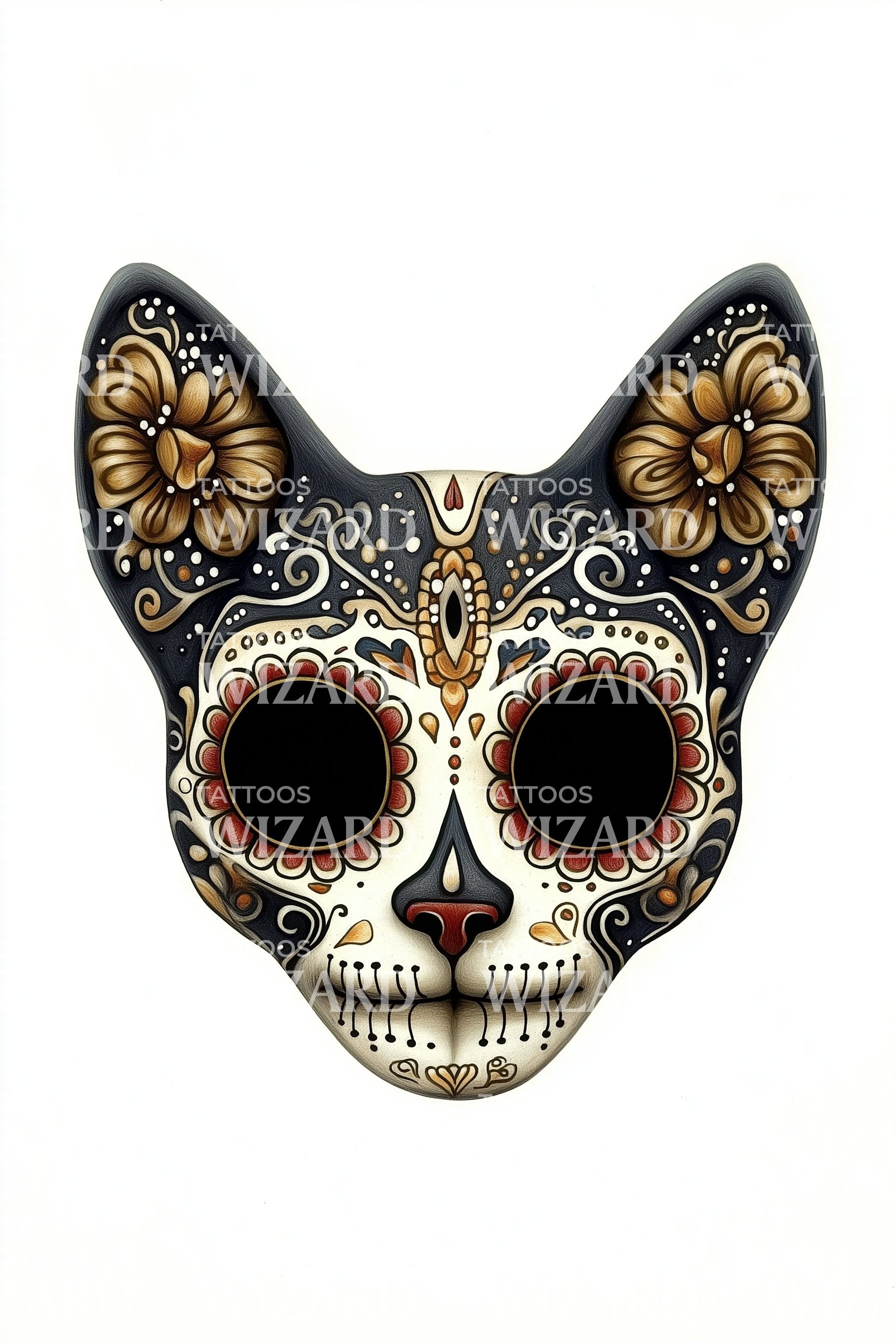 Sugar Skull Cat Mask Tattoo Design