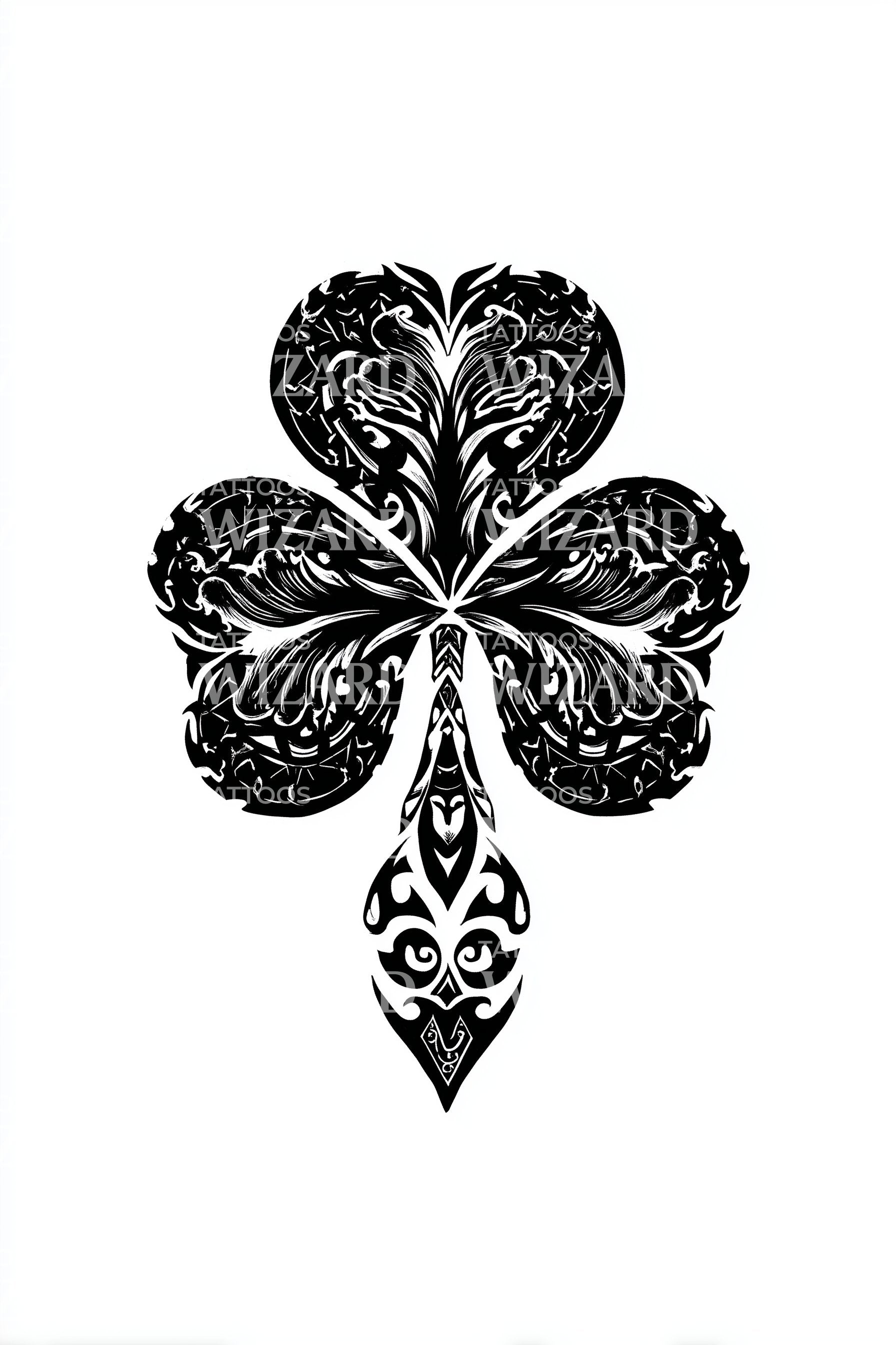 Ощутите сочетание ирландского наследия и роскоши с этим орнаментальным тату дизайном клевера. Вдохновлённый изысканностью барочного стиля, татуировка демонстрирует замысловатые детали, олицетворяющие удачу и благополучие. Украсьте свою кожу этим изящным воплощением процветания, символом ирландского очарования.