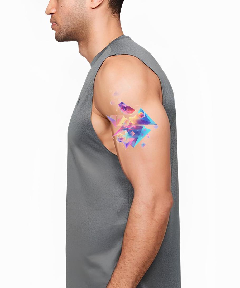 Погрузитесь в космос с этим геометрическим тату-дизайном, наполненным яркими цветами и сложной геометрией. Он искусно объединяет духовные и космические миры, создавая прекрасное свидетельство тайн вселенной. Ваша кожа становится сияющим полотном символизма, понятным тем, кто ценит космические чудеса.