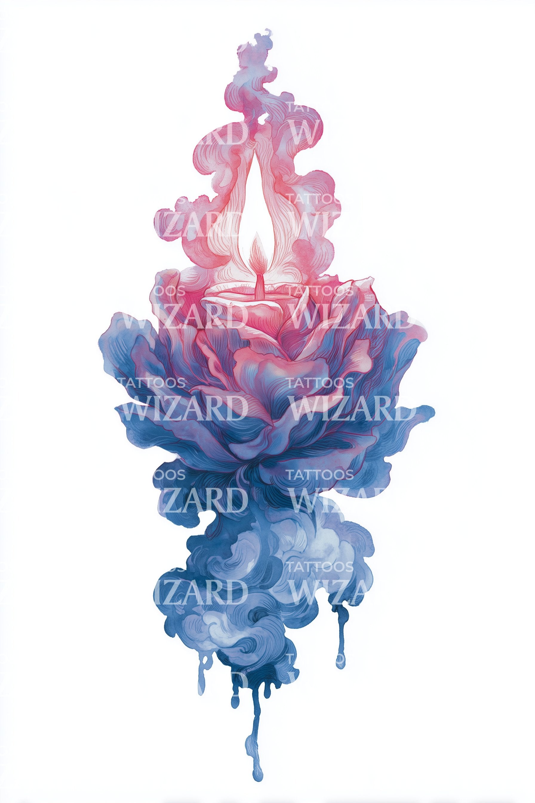 Зажгите свою индивидуальность с этим акварельным тату с лотосом, сияющим яркими алыми оттенками. Мастерски имитируя плавное смешение акварельного распыления, этот изысканный цветок символизирует энергию и трансформацию. Прекрасно художественное произведение, которое рассказывает историю на вашей коже.