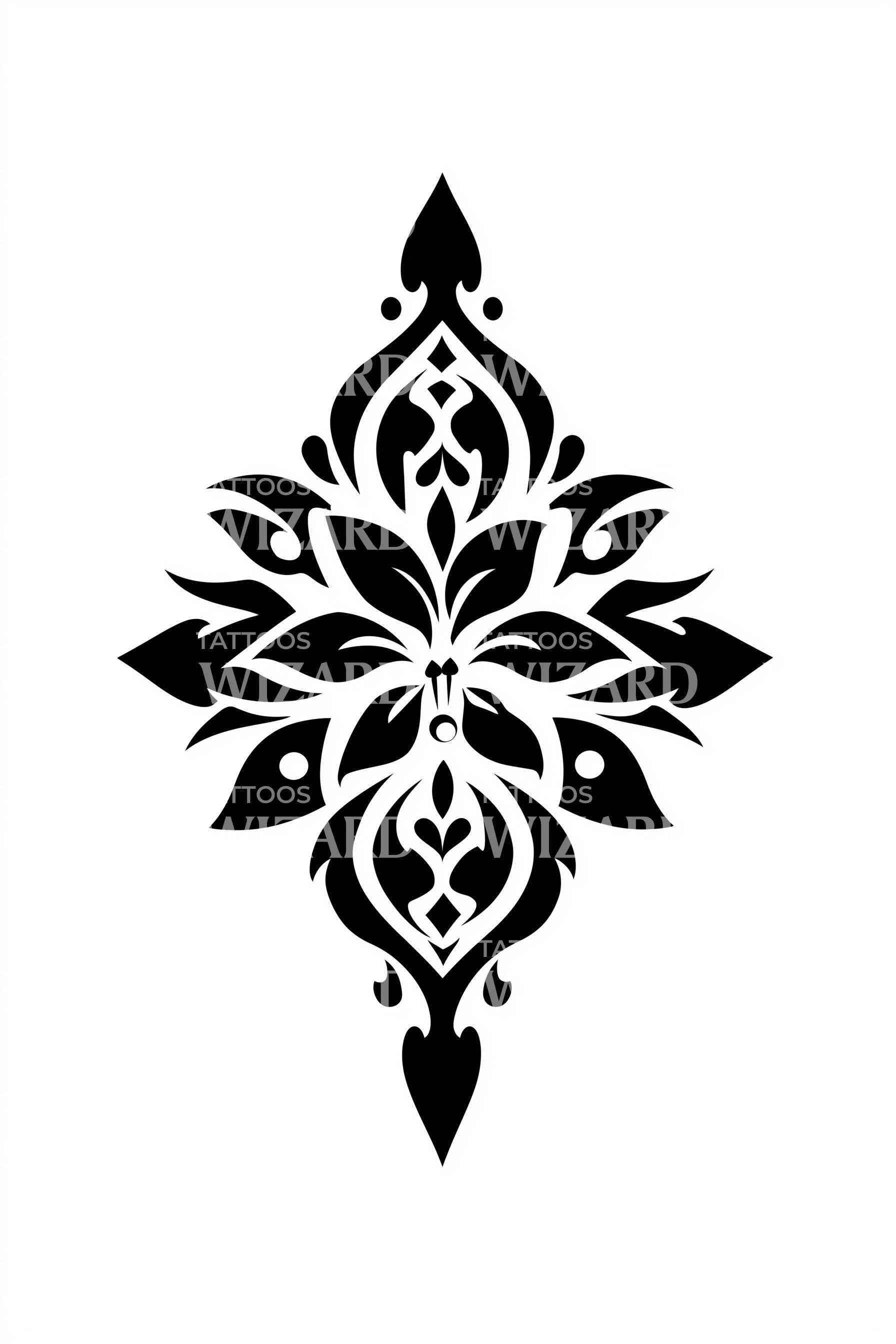 Погрузитесь в искусство татуировки в стиле blackwork с этим изысканным узором Damask Diamond. Воплощая идеальный баланс симметрии и орнаментальной эстетики, он завораживает своими цветочными украшениями. Вечное воплощение искусства blackwork, этот дизайн татуировки излучает элегантность и утонченность.