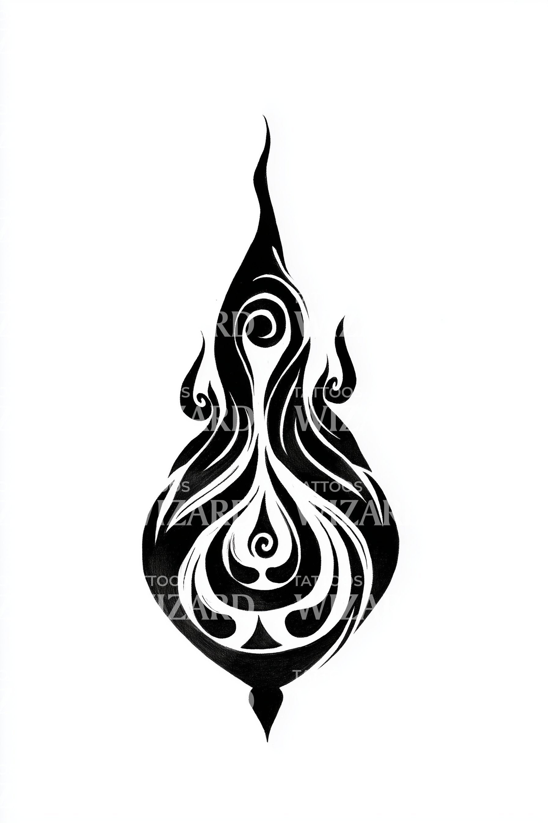 Этот дизайн татуировки в стиле трайбл искусно сочетает энергию и дух. Элементы угля, тотема и пламени символизируют силу и стойкость. Трайбл-влияние не только добавляет оттенок мистики, но и отдает дань древней мудрости. Идеально подходит для тех, кто ищет самовыражение через художественную татуировку.