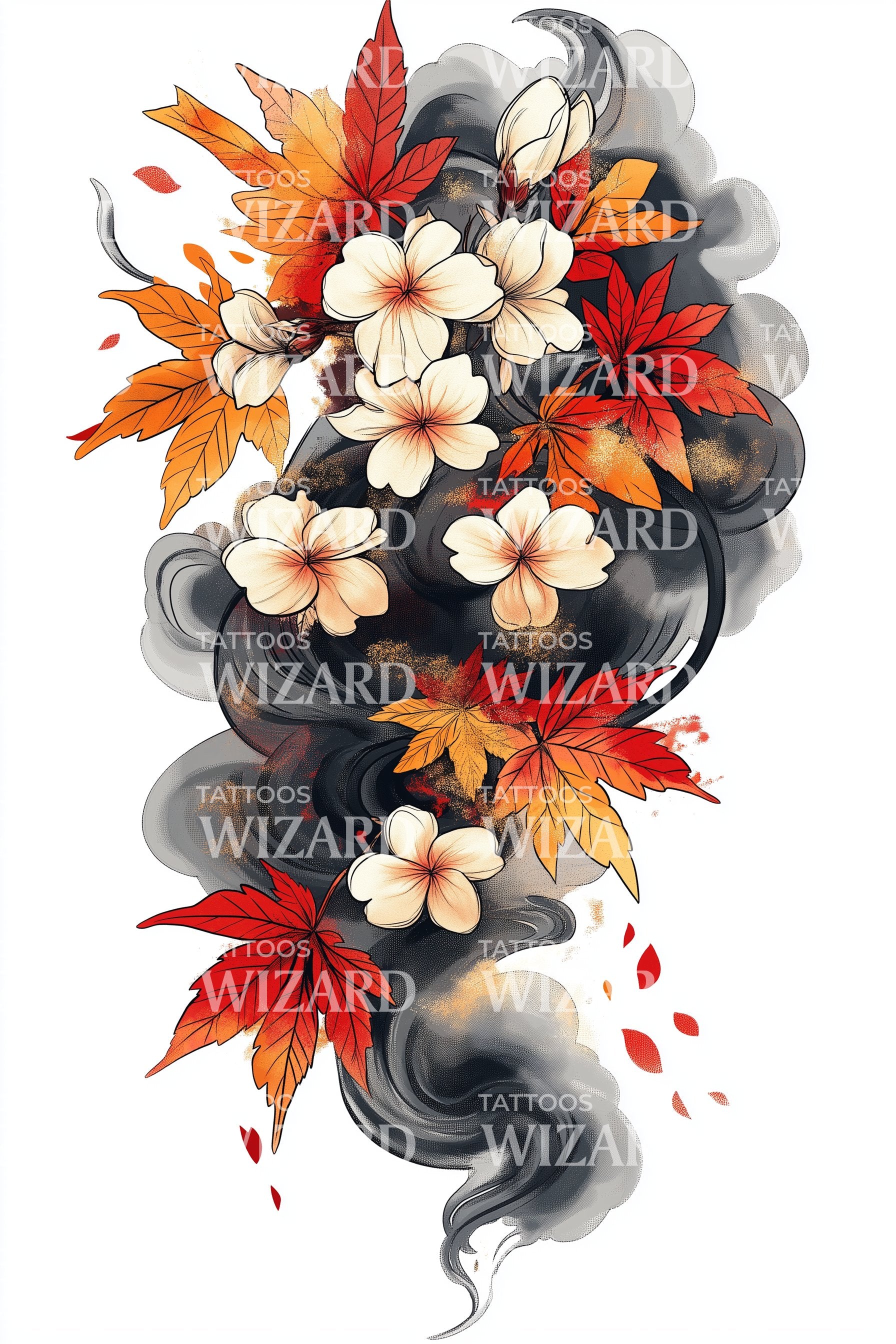 Огненный дизайн татуировки с дымом плюмерии