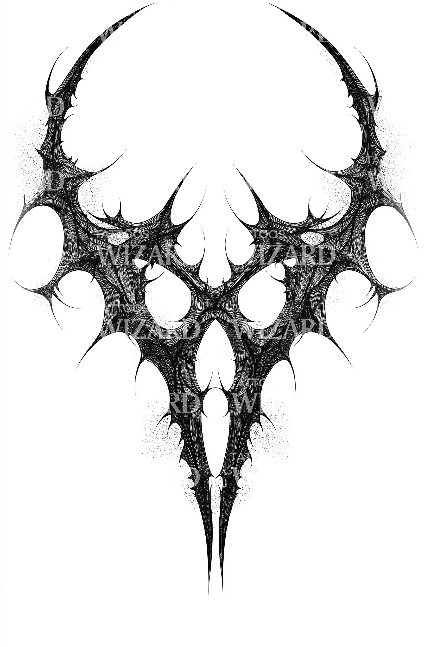Освободите свою дерзкую сторону с нашим сенсационным дизайном татуировки в стиле трибл. Свирепая симметрия объединяет маску рогатого демона, художественно выполненную в насыщенных трибл-мотивах. Этот выразительный черный дизайн мощно завораживает, демонстрируя смелое намерение и отважный дух. Сделайте сильное заявление с этим уникальным произведением.