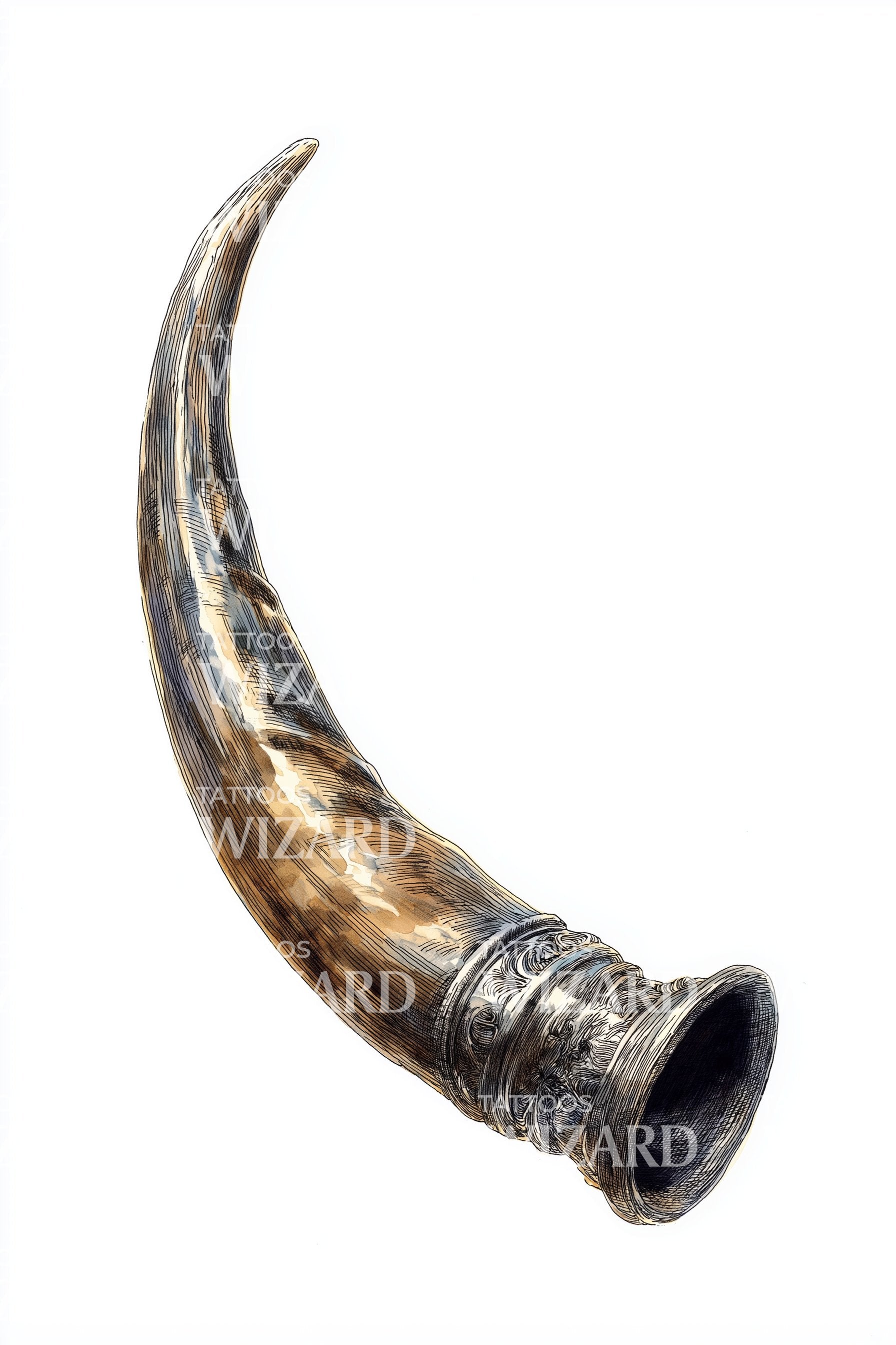 Татуировка с дизайном трофея в виде племенного рога