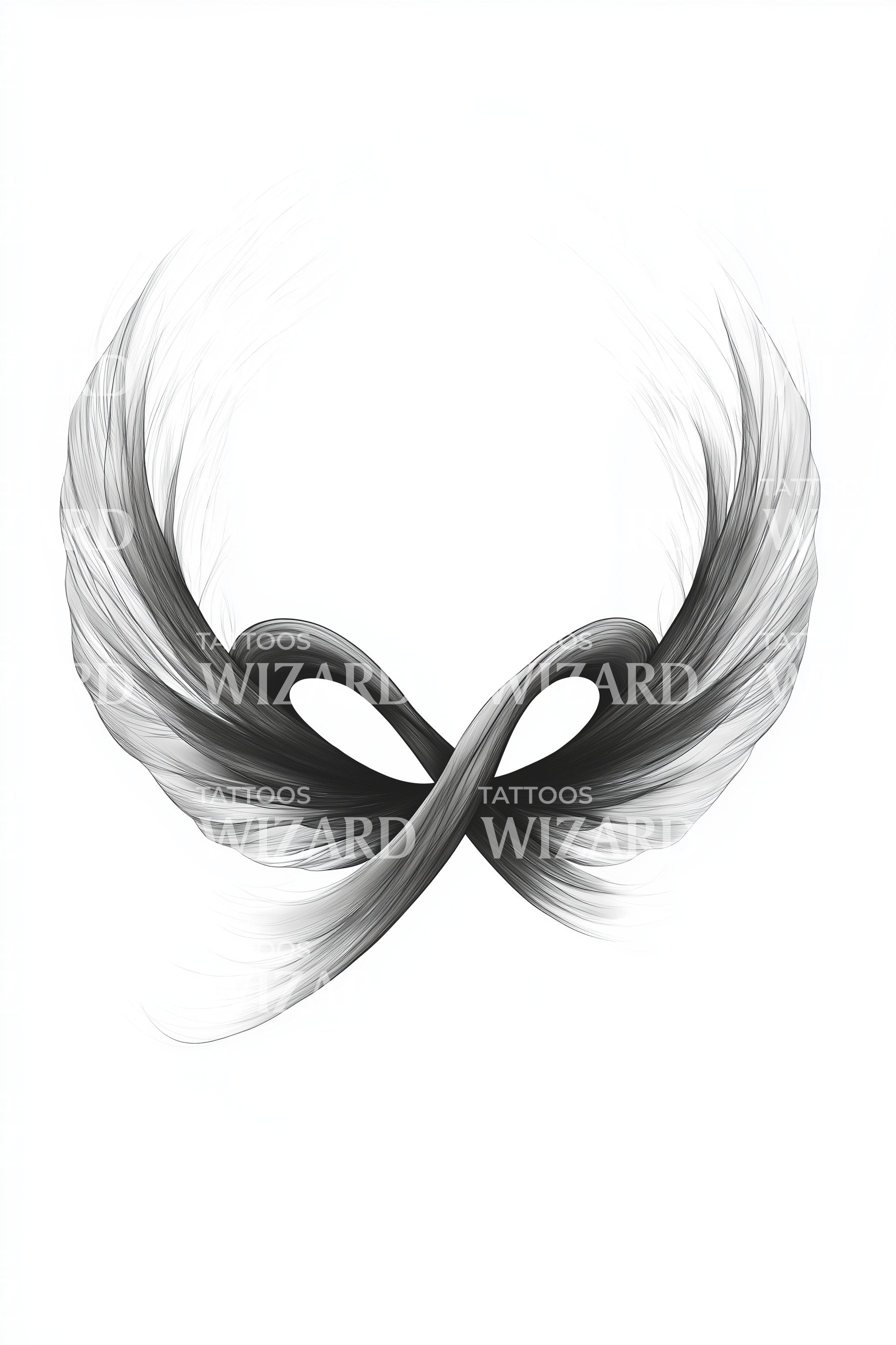 Sketch-soft wings sweep into an infinity knot, each feather rendered in airy graphite lines and whispering gradations. The symbol twines freedom with unending return, a vow to rise, rest, and rise again. Wearing it feels like quiet lift beneath the heart, a flowing grace that keeps moving.