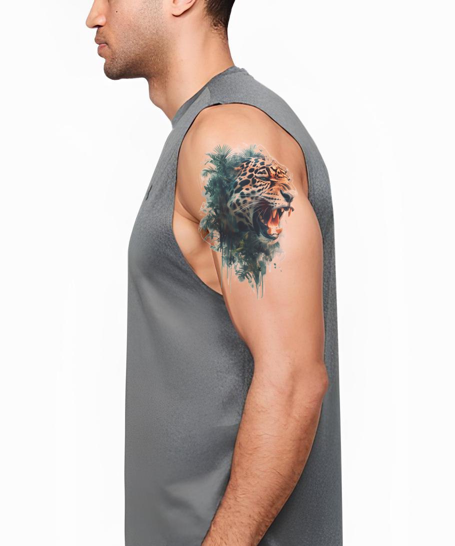 Исследуйте свою яростную сторону с этим дизайном татуировки в стиле реализм. В композиции, сочетающей ягуаров, пантер и леопардов, отражается свирепая сила этих величественных хищных кошек. Освободите своего внутреннего зверя, принимая опасный, огненный дух, воплощённый в дикой красоте больших кошек.