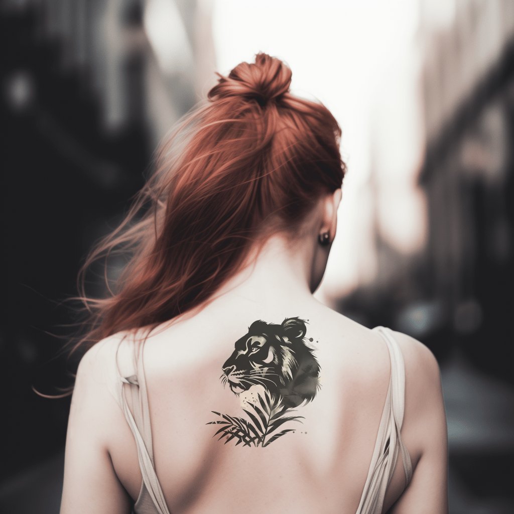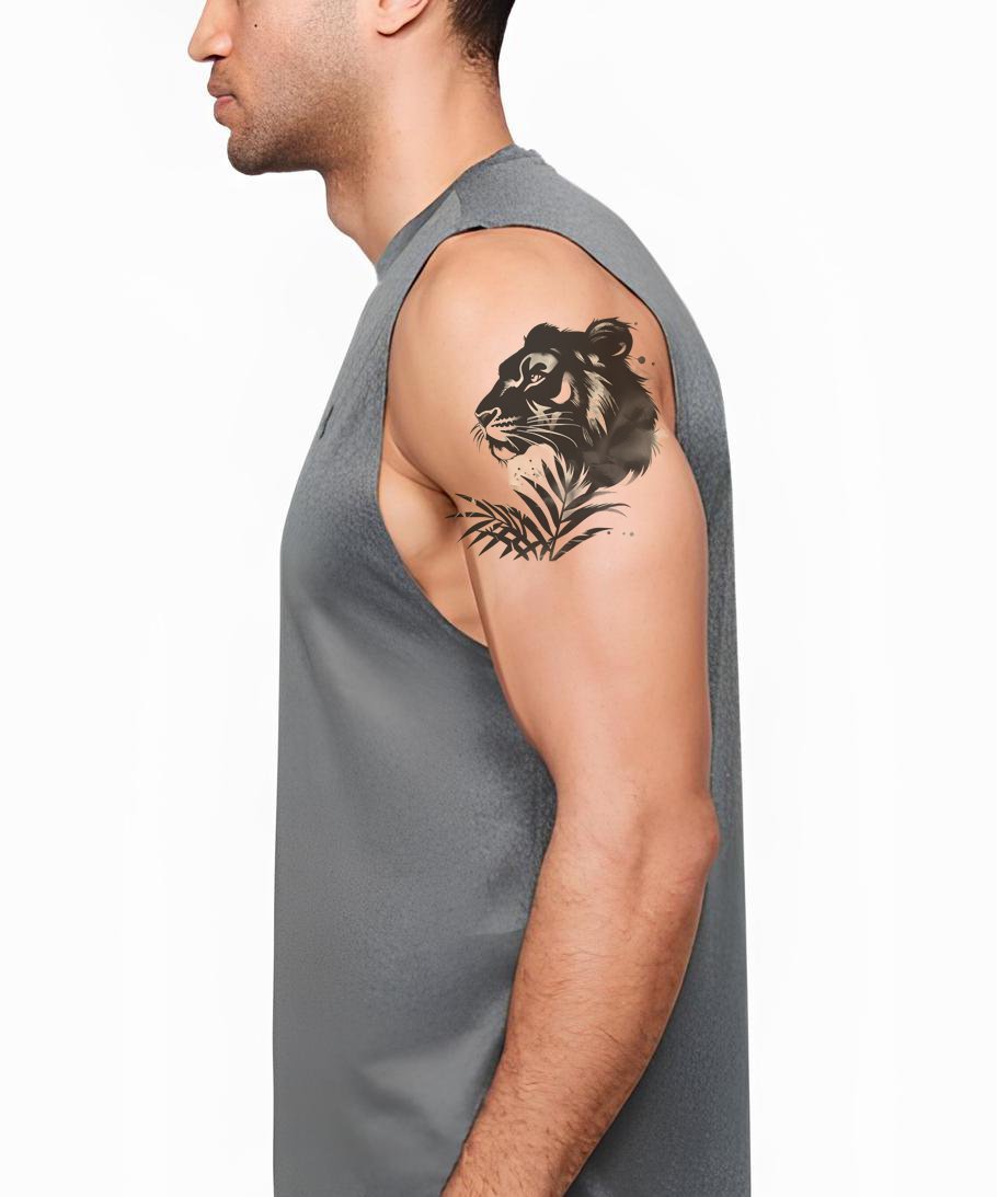 Таинственный дизайн татуировки с тигром из джунглей