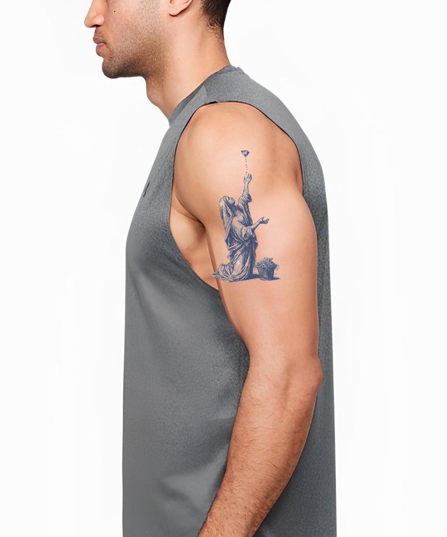 Тату-дизайн с изображением фигуры в позе молящегося на коленях