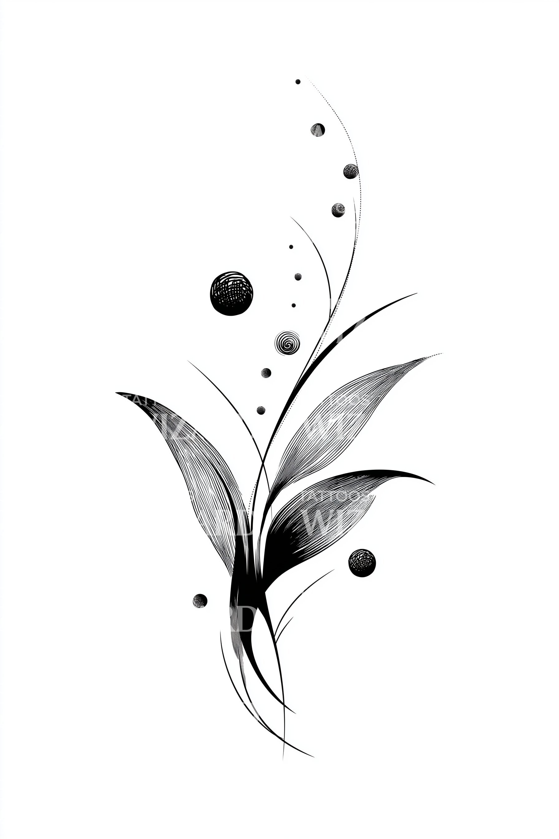 Этот минималистичный дотворк-тату дизайн воплощает уникальное сочетание художественного выражения. Изображая тщательно проработанный лист в орбите, он излучает ощущение потока и гармонии, подчеркнутое его простой, но эффектной эстетикой. Эта работа привлечет тех, кто стремится к тонко глубокому телесному искусству.
