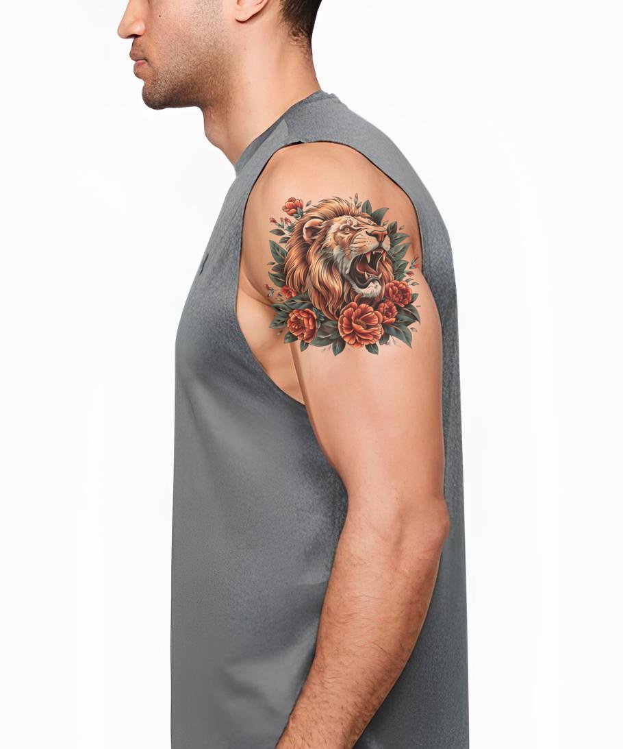 Откройте свою внутреннюю силу с нашим смелым, олдскульным дизайном татуировки с головой льва. Эта иллюстративная работа искусно сочетает в себе необузданную мощь и изящные цветочные акценты. Это не просто татуировка; это свидетельство стойкости и вечной красоты. Идеально подходит для смелых и бесстрашных личностей.