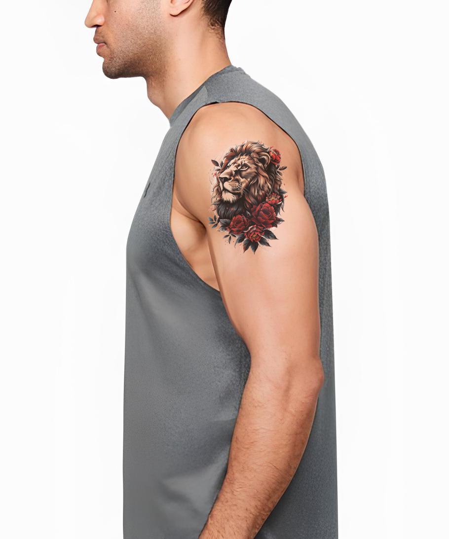 Иллюстративное мастерство Мари проявляется в этом тату-дизайне в стиле олдскул. Величественная голова льва, тщательно проработанная, окружена пышными розами, передающими дикую сущность этого благородного хищника. Эта работа выходит за рамки моды, идеально подходит для тату-мастеров, ценящих классические животные мотивы.