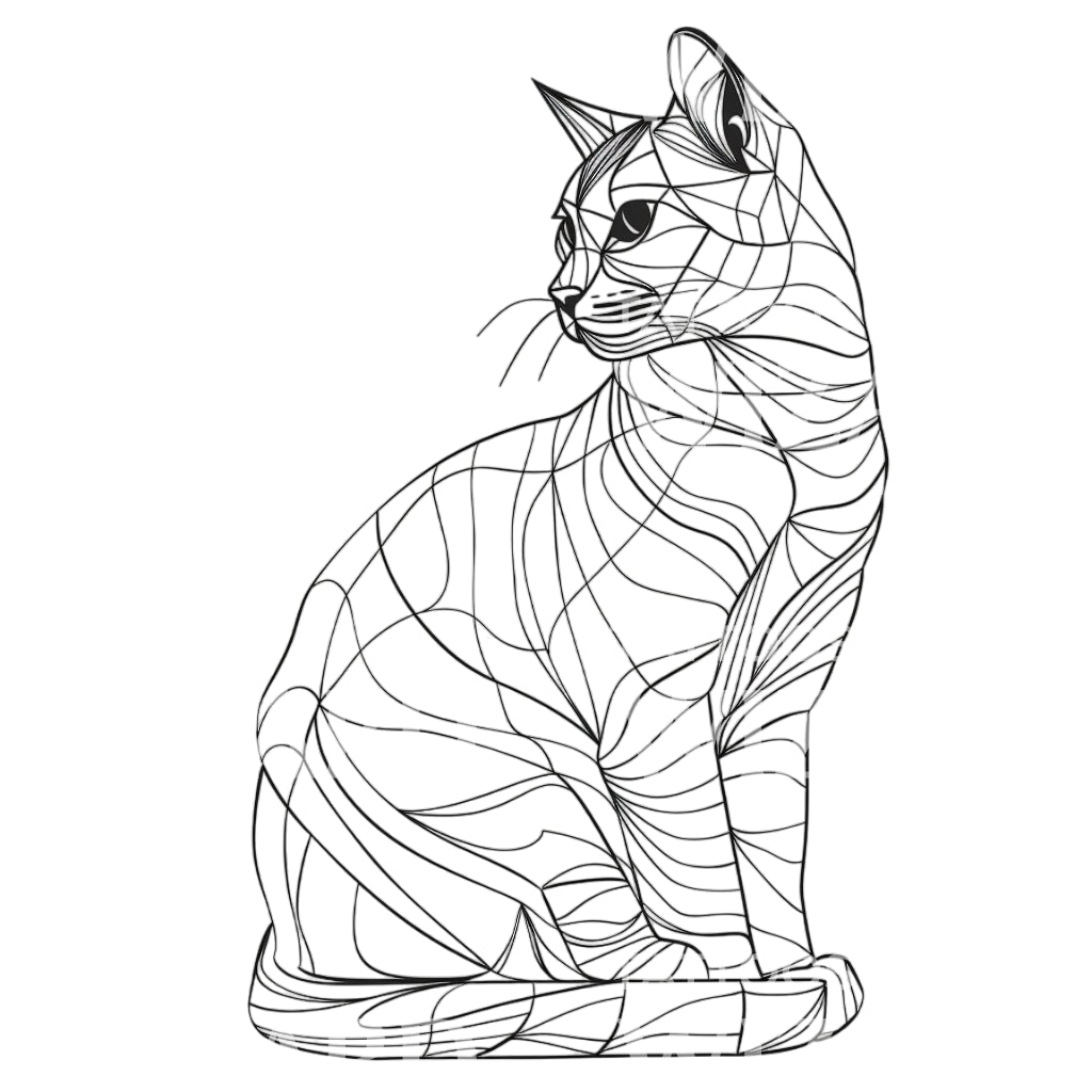 Контурный геометрический минималистичный дизайн татуировки с кошкой