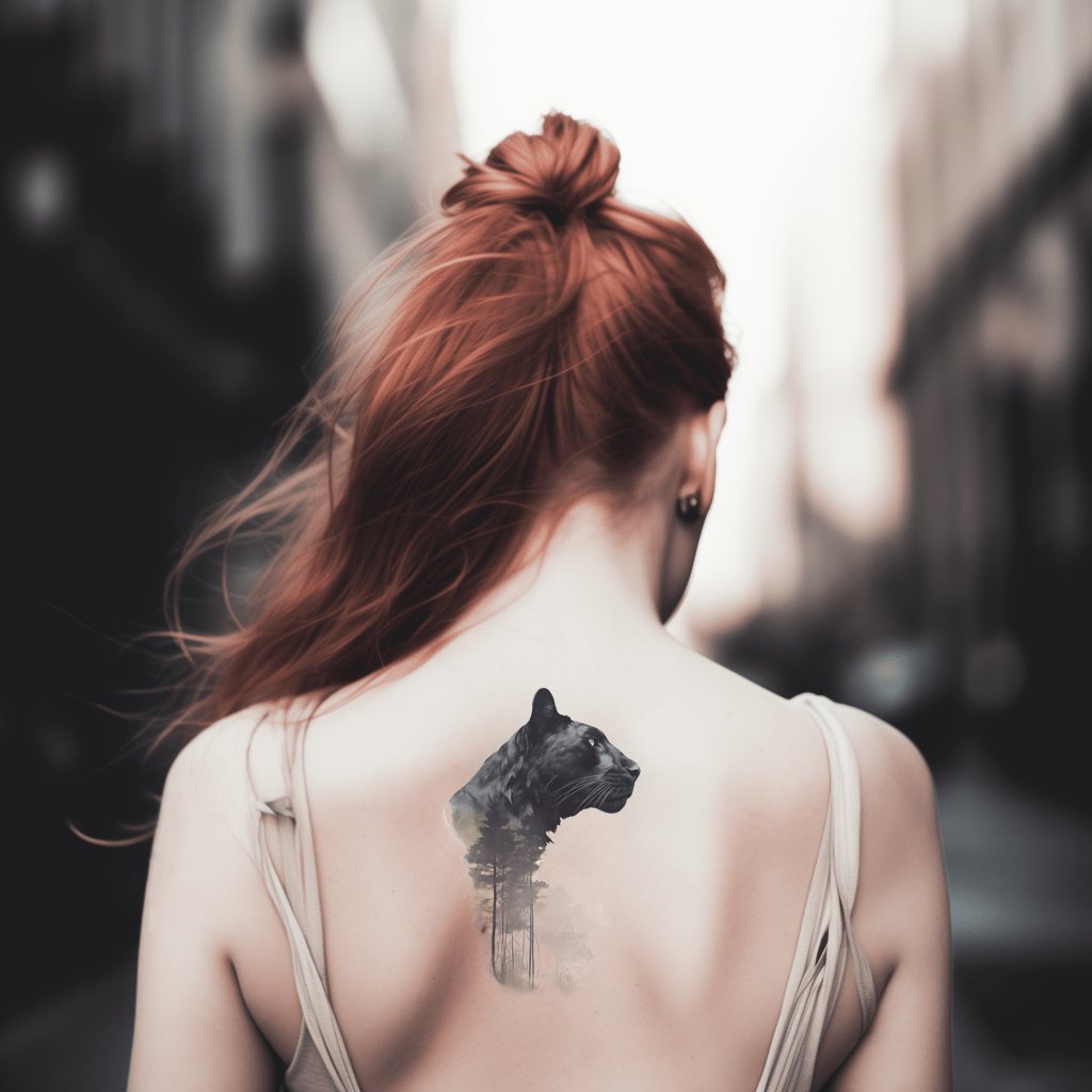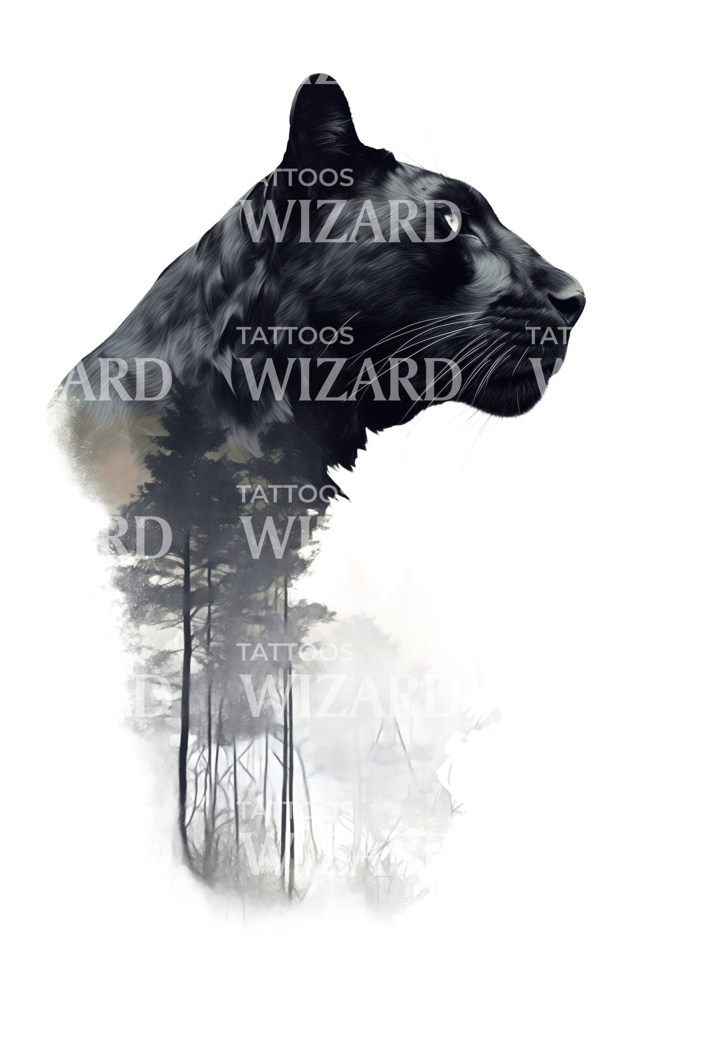 Этот иллюстративный дизайн татуировки воплощает свирепость и величие пантеры, высшего охотника из семейства кошачьих. С исключительным вниманием к деталям он передаёт первозданную красоту млекопитающих, сочетая элементы природы и животного мира в выразительном и захватывающем произведении носимого искусства.