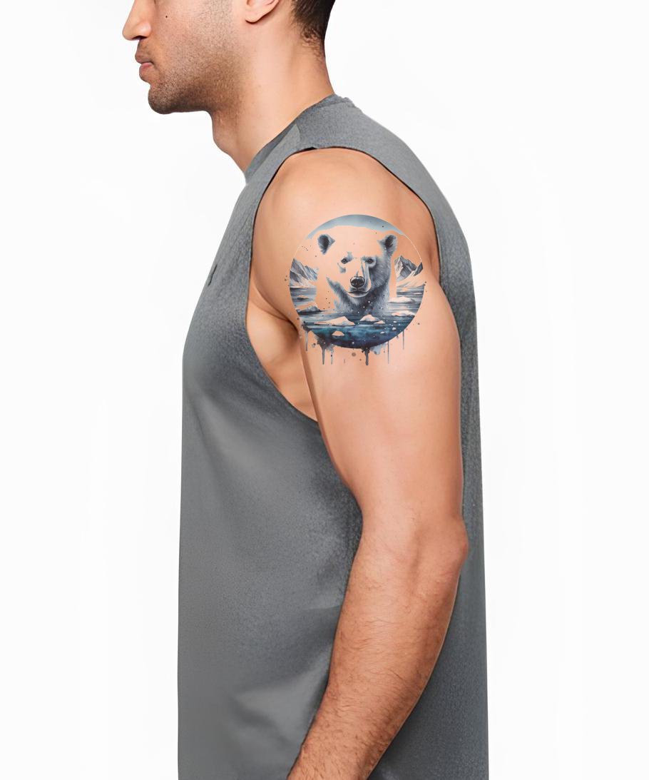 Погрузитесь в дикую красоту этого потрясающего акварельного тату-дизайна. Воплощая морозное очарование белого медведя, этот дизайн наполнен оттенками ледяной белизны, передавая величественный дух дикой природы. Идеально подходит для тех, кто ценит мощный символ стойкости и выживания.