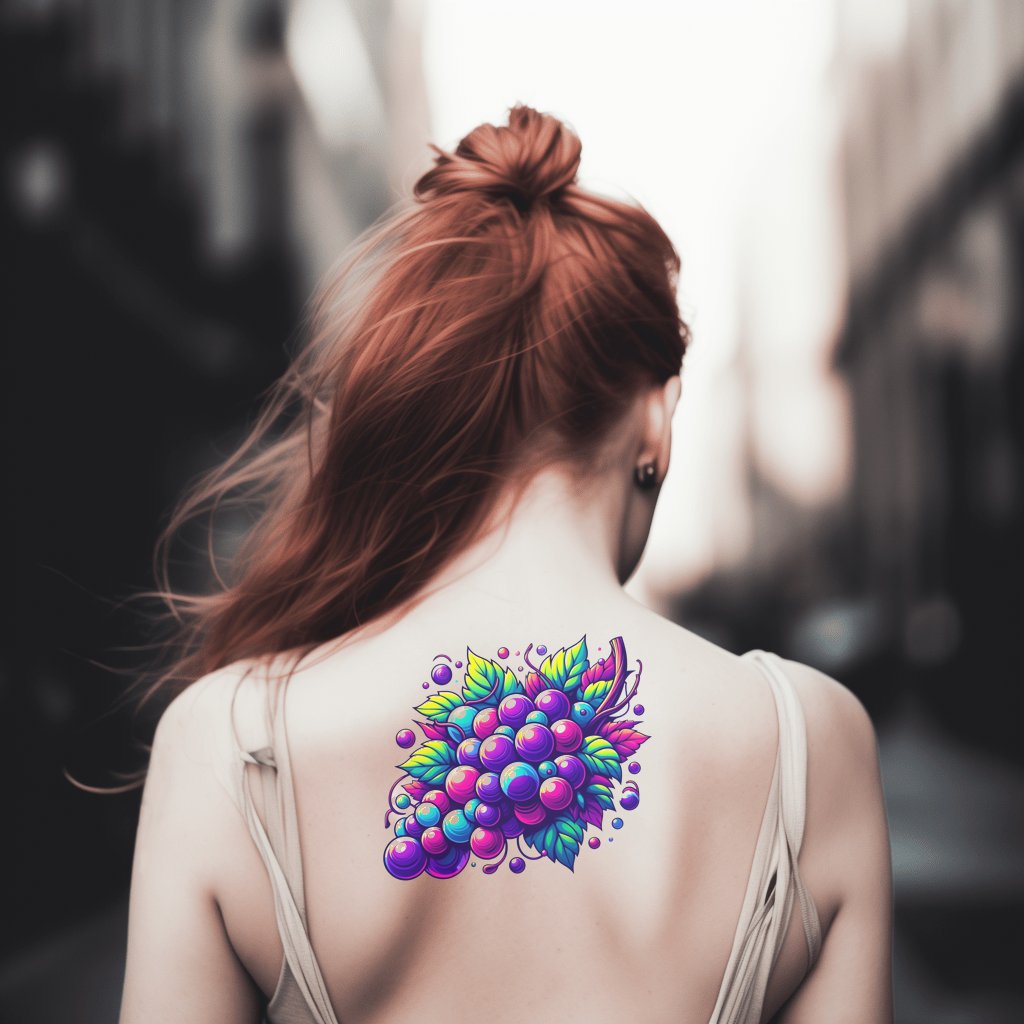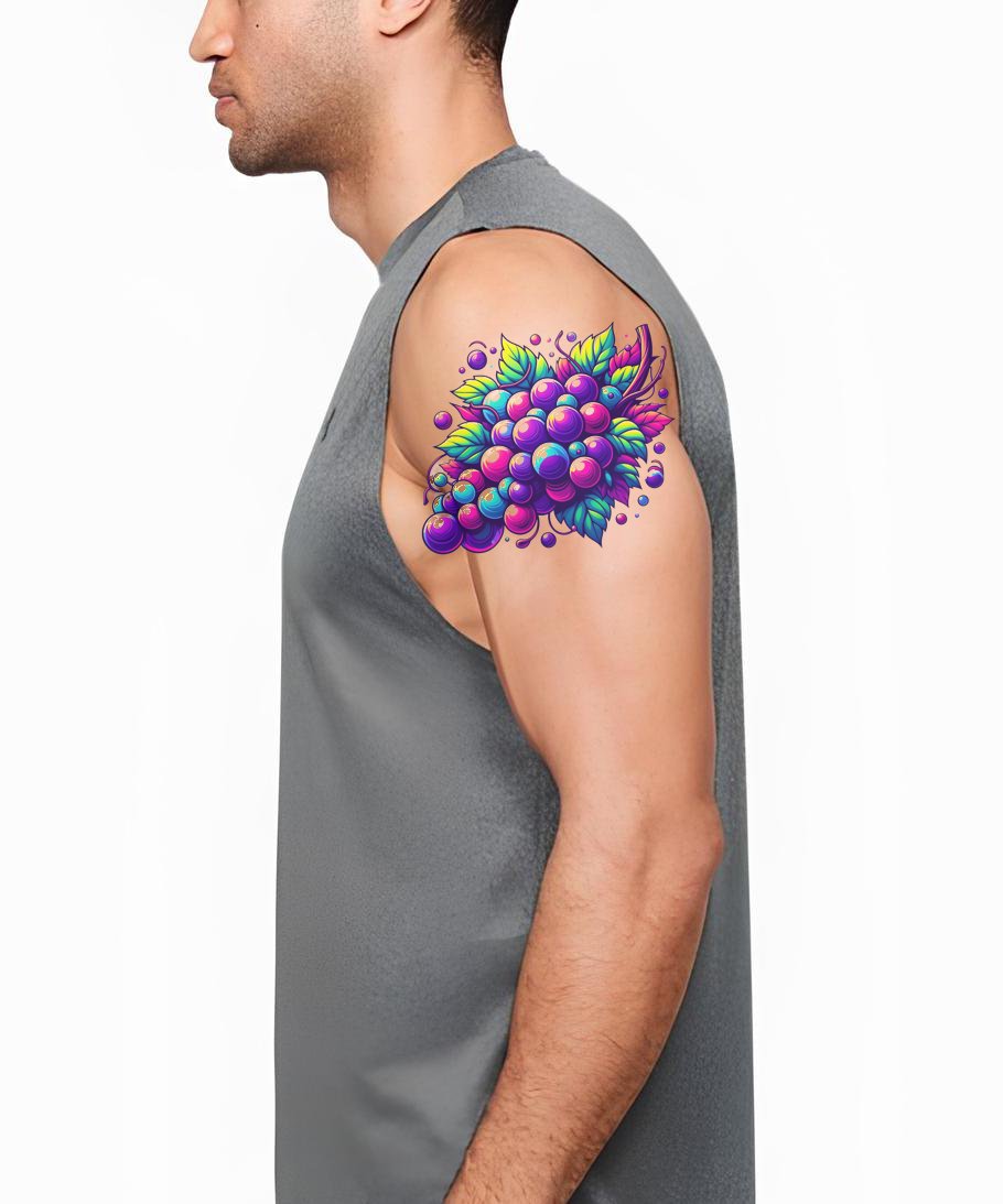 Выразите свою индивидуальность с этим иллюстративным тату-дизайном! Наполненный яркими и свежими оттенками, этот жизнерадостный стиль уникально передаёт сочную привлекательность винограда. Это идеальное тату, чтобы показать вашу любовь к фруктам и освежающим моментам жизни. Прекрасно подходит для ярких и энергичных натур!