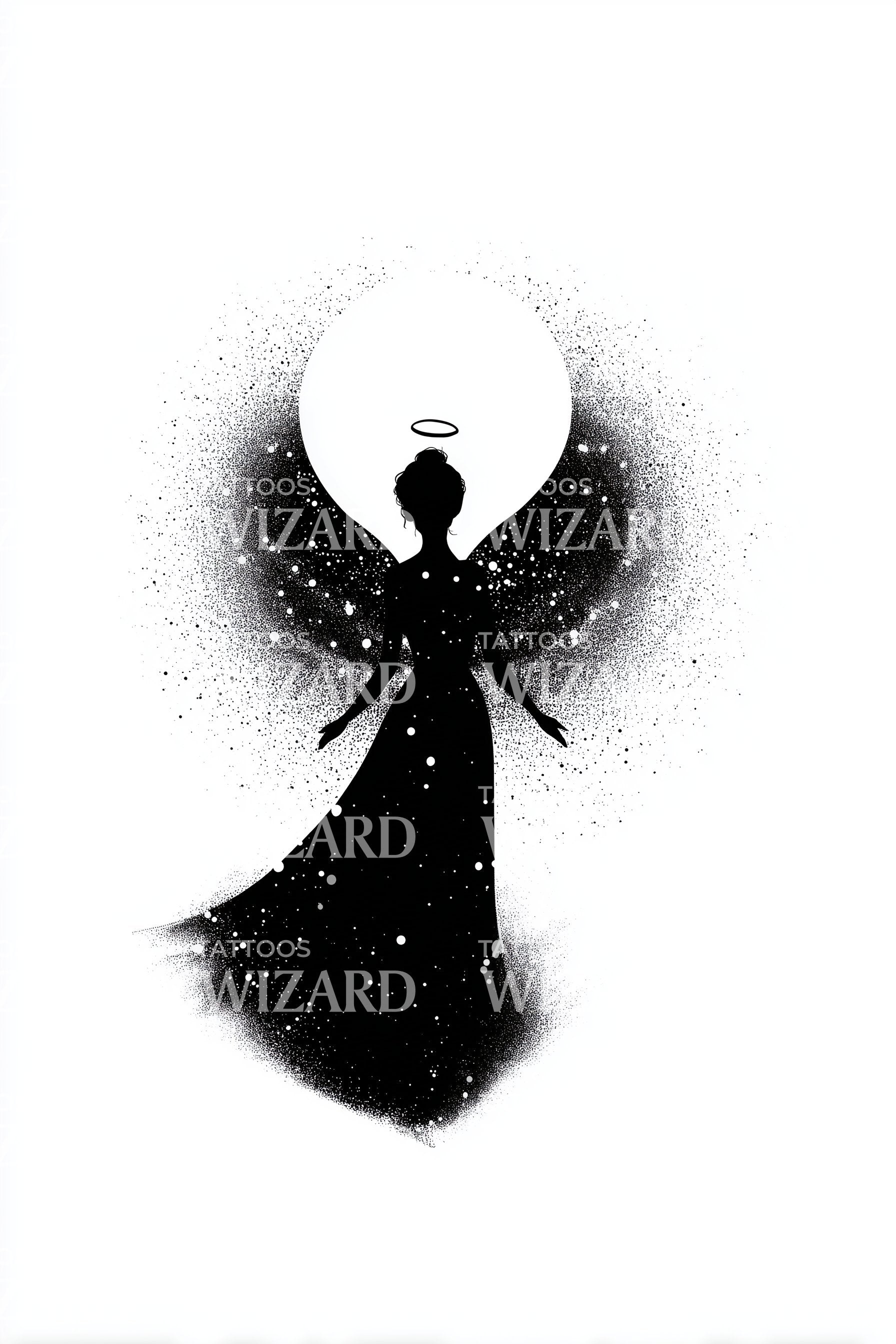Дизайн татуировки сияющего ангела с нимбом