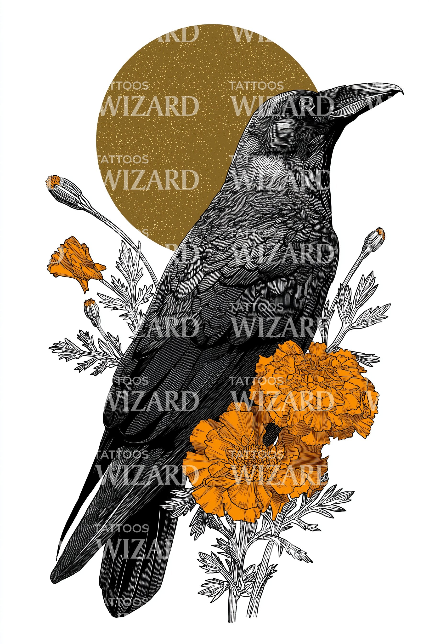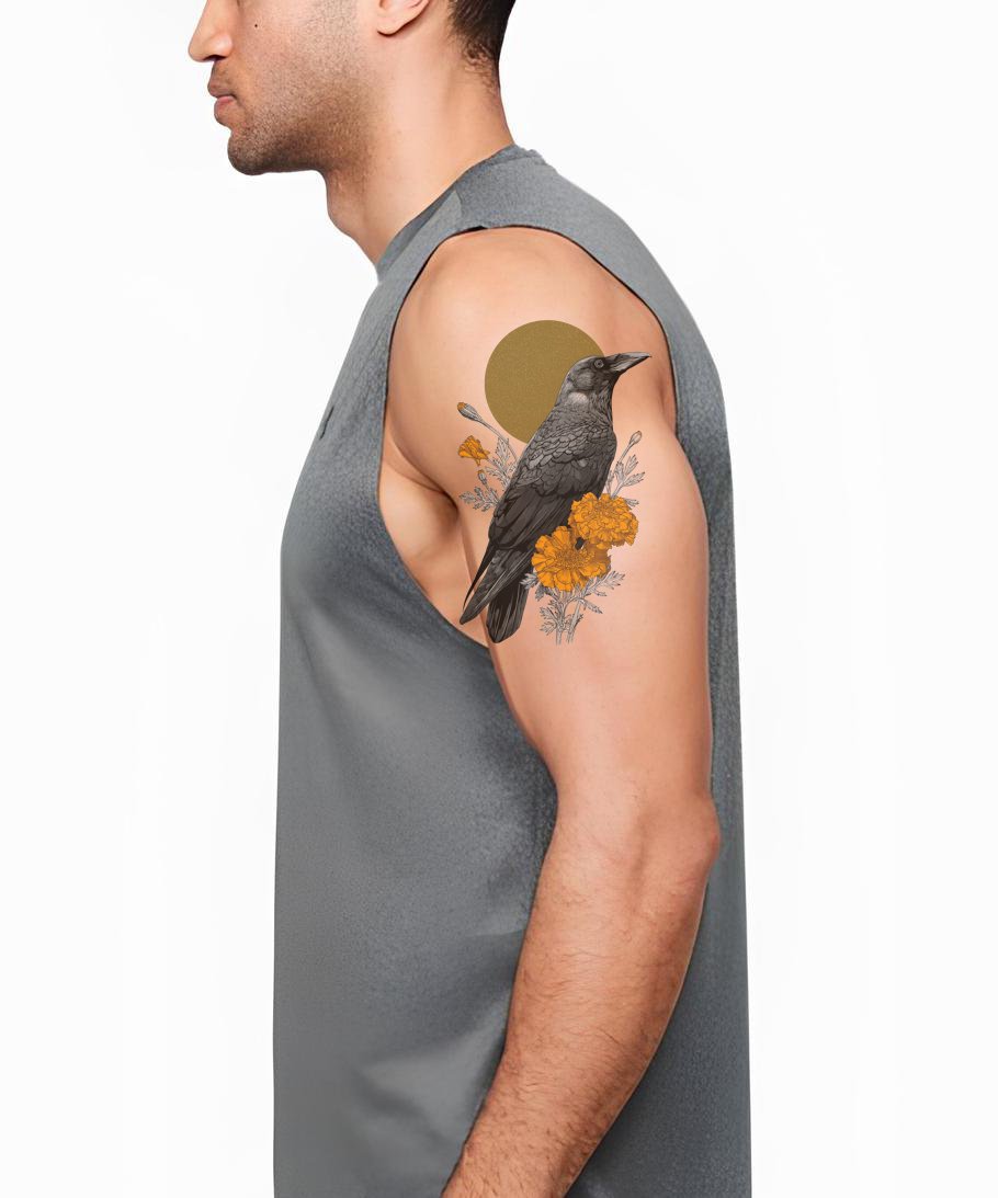 Погрузитесь в тайну нашего изысканного тату "Ворон и Затмение". Темные, контрастные оттенки прекрасно сочетаются в замысловатых линиях, изображая задумчивого ворона и элегантную ноготки в момент затмения. Этот строгий черный дизайн создает эффектную игру света и тени, делая смелое, выразительное заявление на вашей коже.