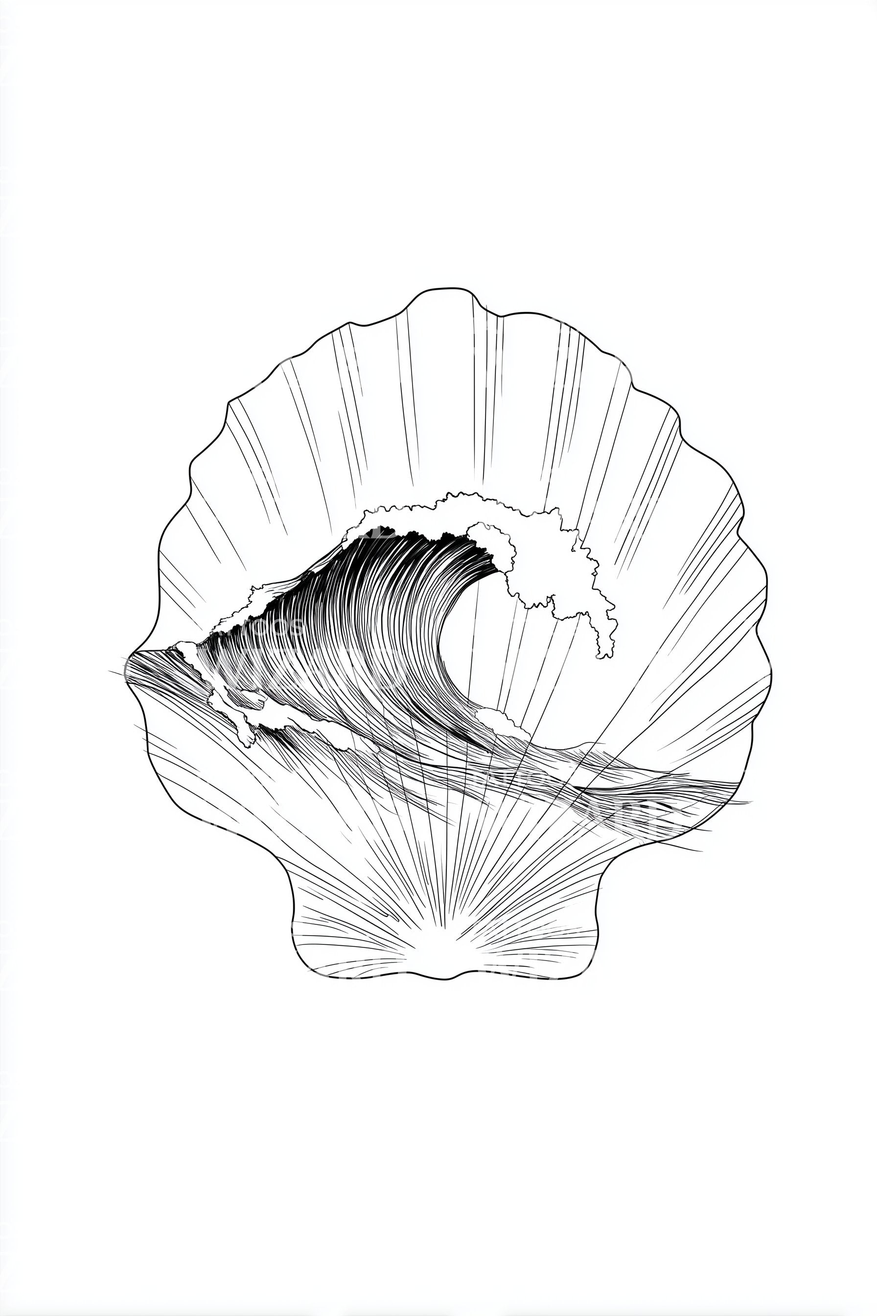 Fineline shell cradling a breaking wave, radiant lines fanning like tide. Symbolizes protection, renewal, and the pull of coast, a reminder to carry the ocean within. Feels calm yet powerful. Placements: inner forearm for elegant flow; shoulder cap for scalloped curve; ribcage for closeness; calf for vertical motion.