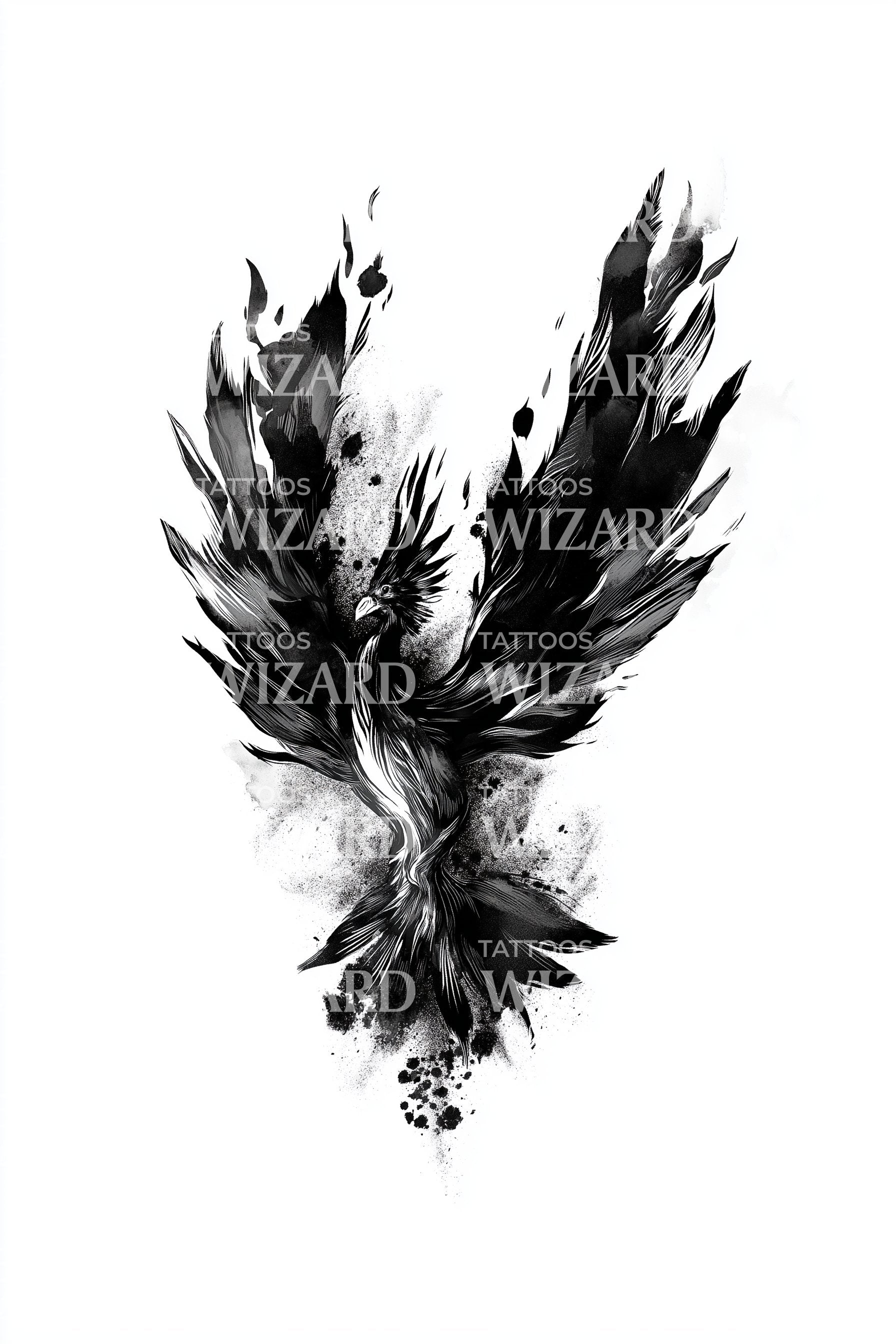 Освободите преобразующую силу этого тату дизайна феникса в стиле blackwork. Наполненный всплесками чёрных чернил и завораживающей энергией, он — не просто рисунок, а заявление о возрождении и обновлении. Идеально подходит тем, кто готов восстановиться и восстать из пепла с силой и страстью.