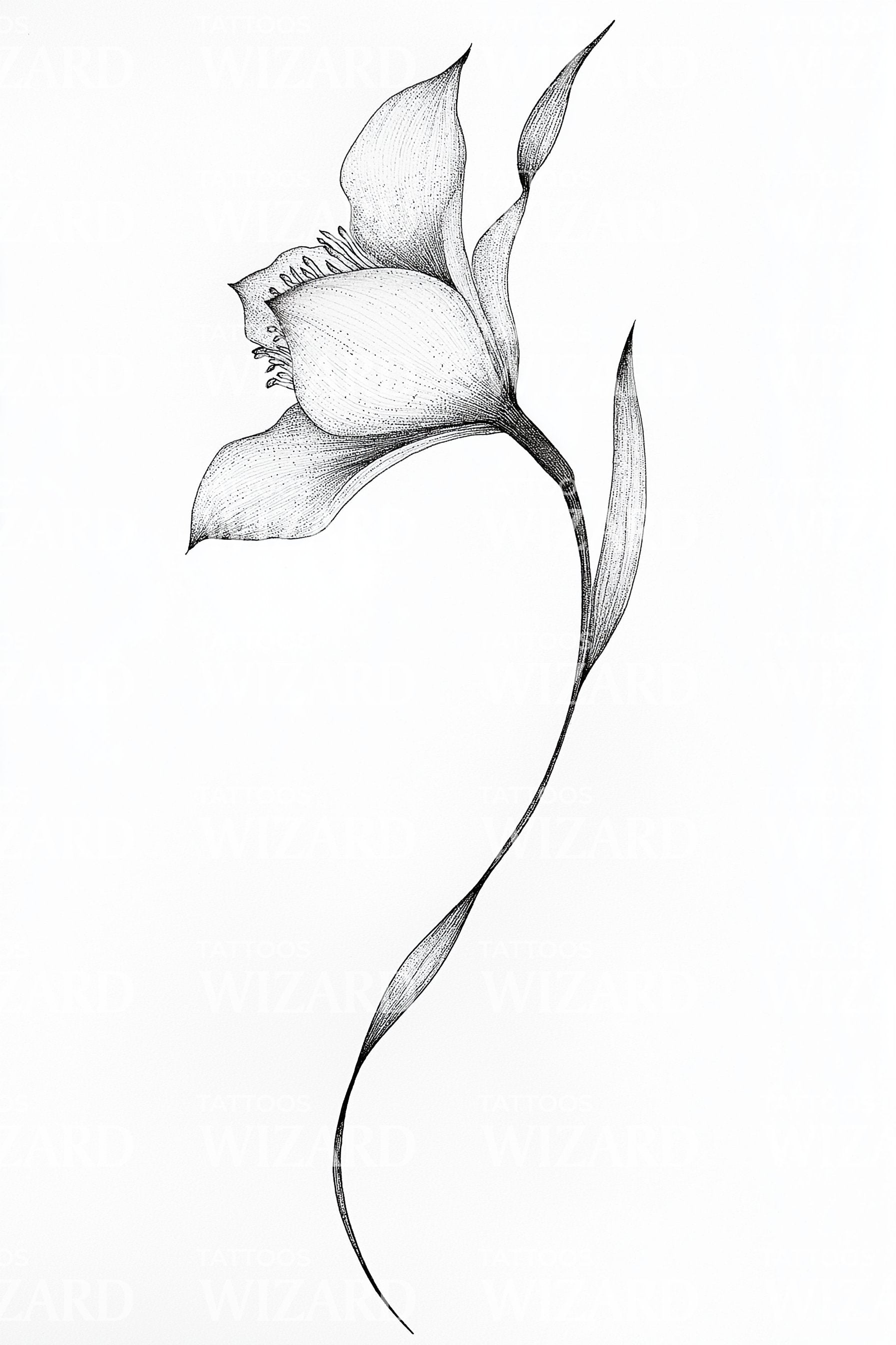 Этот минималистичный тату-дизайн в стиле тонкой линии воспевает грацию и простоту. Элегантно выполненный, он изображает изящный ботанический стебель, привлекающий современного минималиста. Это не просто татуировка; это дань природе, минималистичной эстетике и непринужденному очарованию. Идеально подходит для тех, кто ищет сдержанное телесное искусство.
