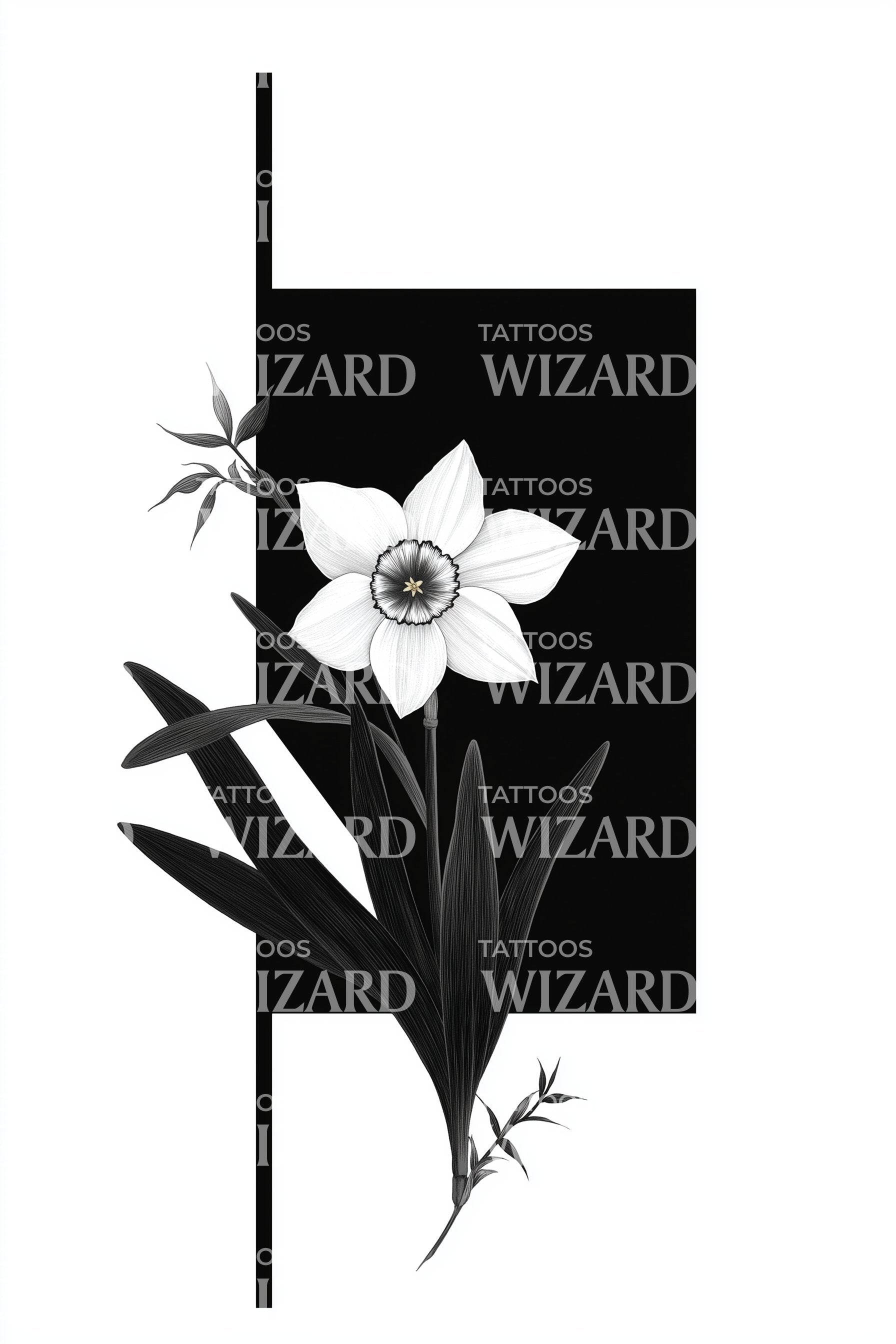 Продемонстрируйте элегантность на своей коже с этим минималистичным тату-дизайном. Он изображает изящную лилию в монохроме, художественно дополненную сдержанной полосой. Этот дизайн воплощает утонченность и простоту, становясь идеальным выражением вашего изысканного образа жизни.