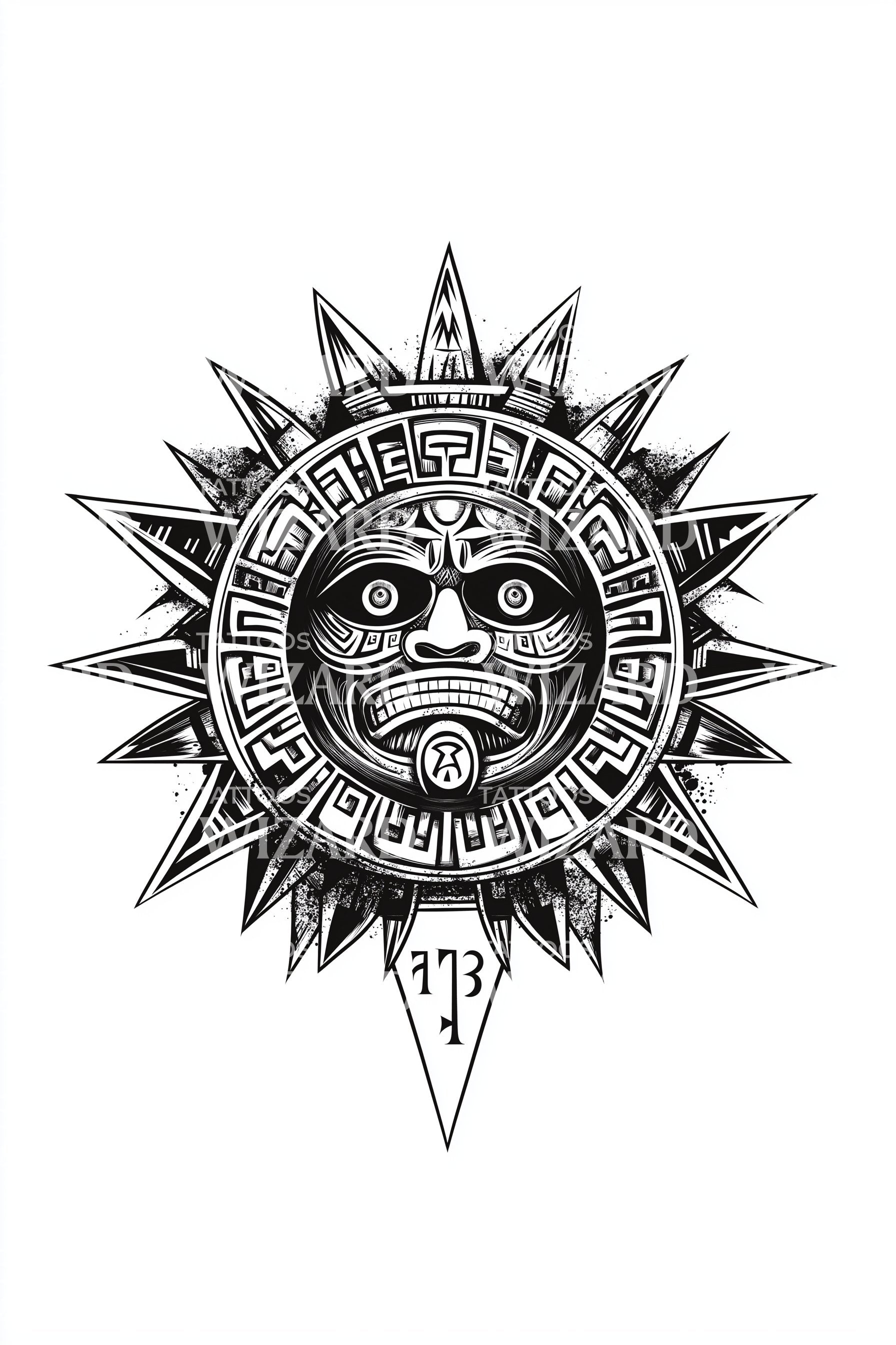 Освободите своего внутреннего воина с этой татуировкой ацтекского солнца. Изображённое с племенным лицом, оно воплощает древнюю энергию и мистику. Этот дизайн, вдохновлённый сложным ацтекским календарём, сочетает традиции и искусство, создавая вечный образ для тех, кто тянется к племенным корням и солнечным символам.
