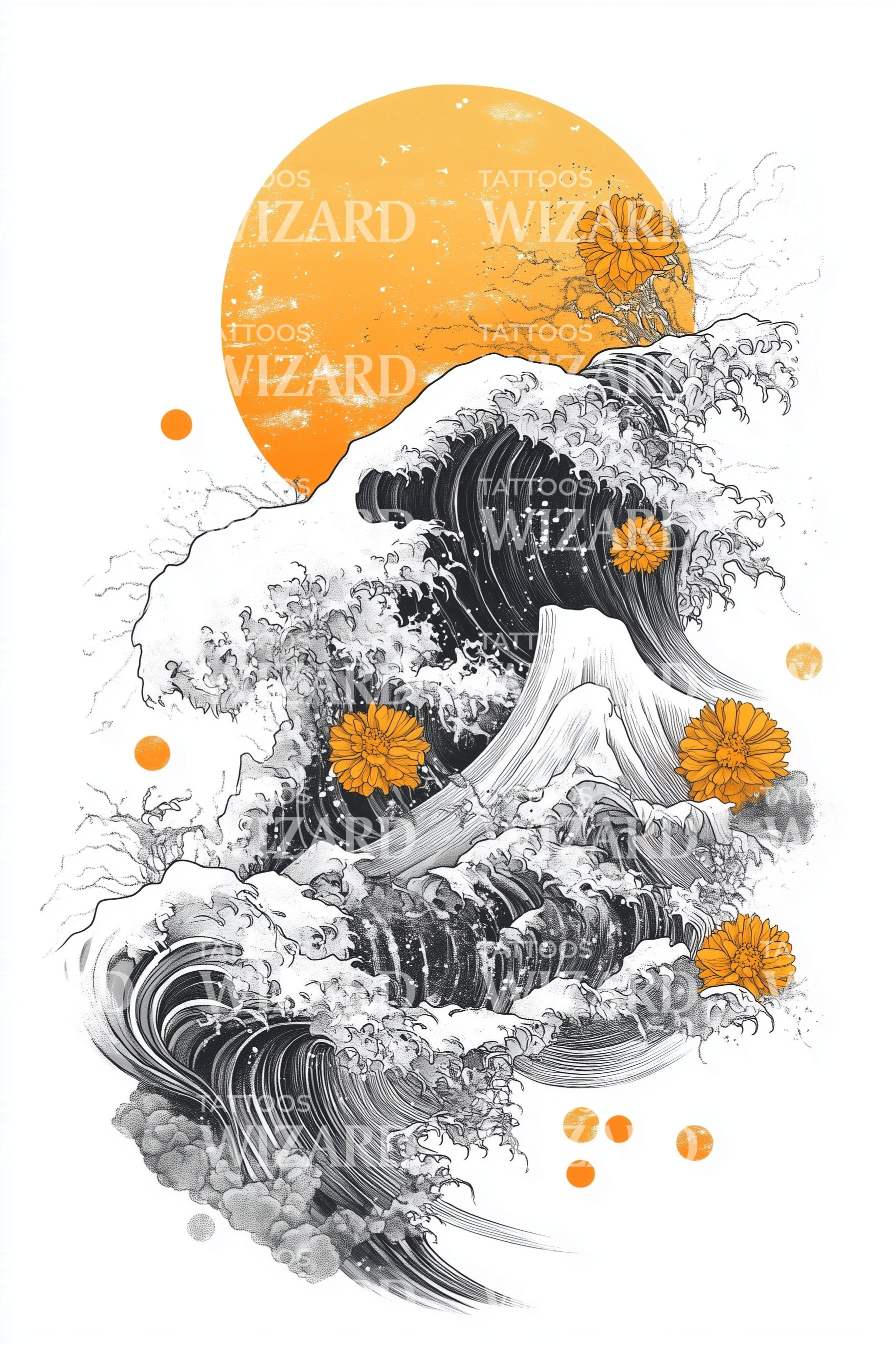 Погрузитесь в спокойную красоту природы с нашим японским тату-дизайном. Он прекрасно передаёт мощь океанских волн, умиротворённый горный пейзаж и сияющее солнце. Этот дизайн сочетает в себе сдержанность и завораживающее очарование живописных уголков Японии. Идеальная дань вашей любви к природе.