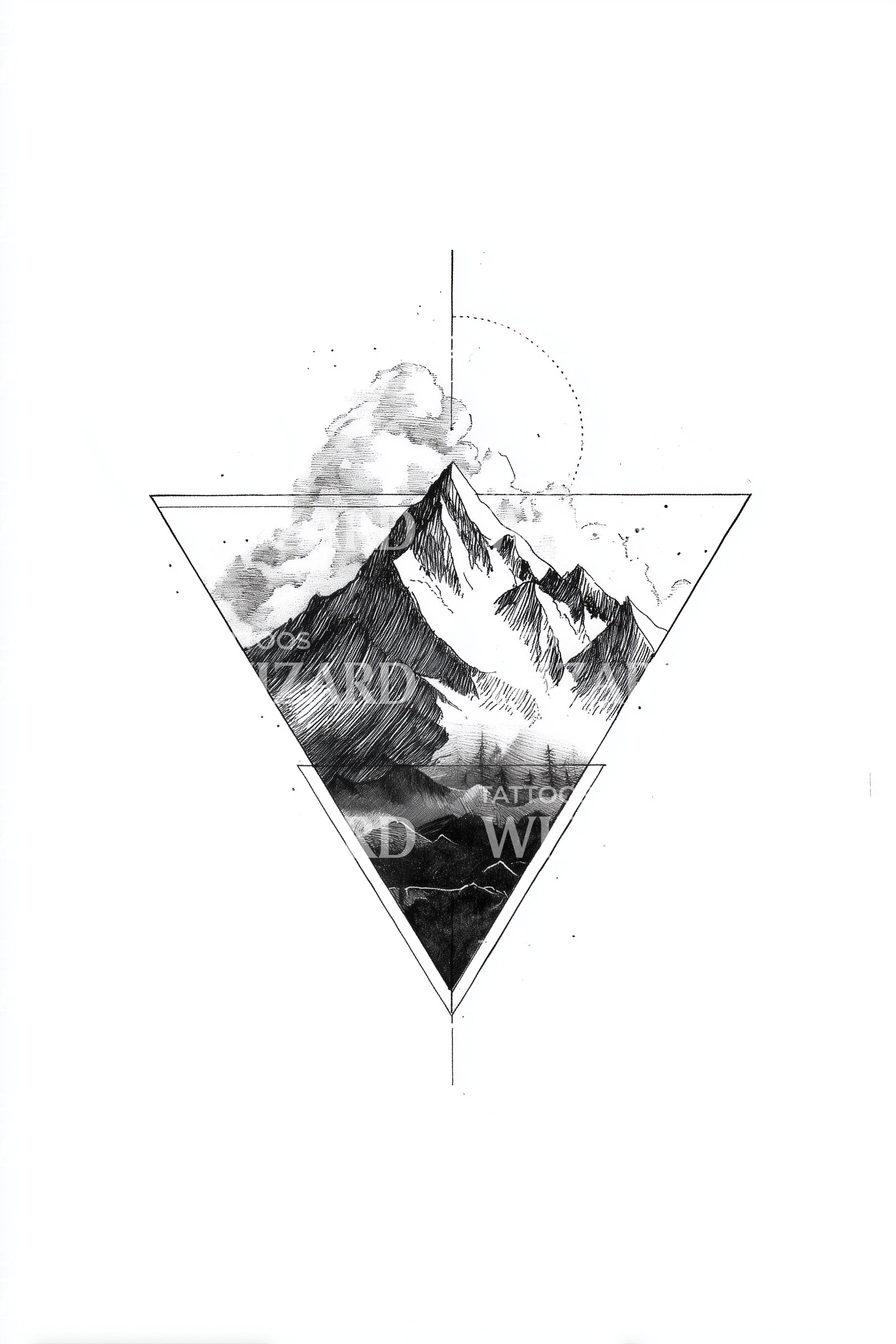 Татуировка с дизайном треугольного пика на солнце