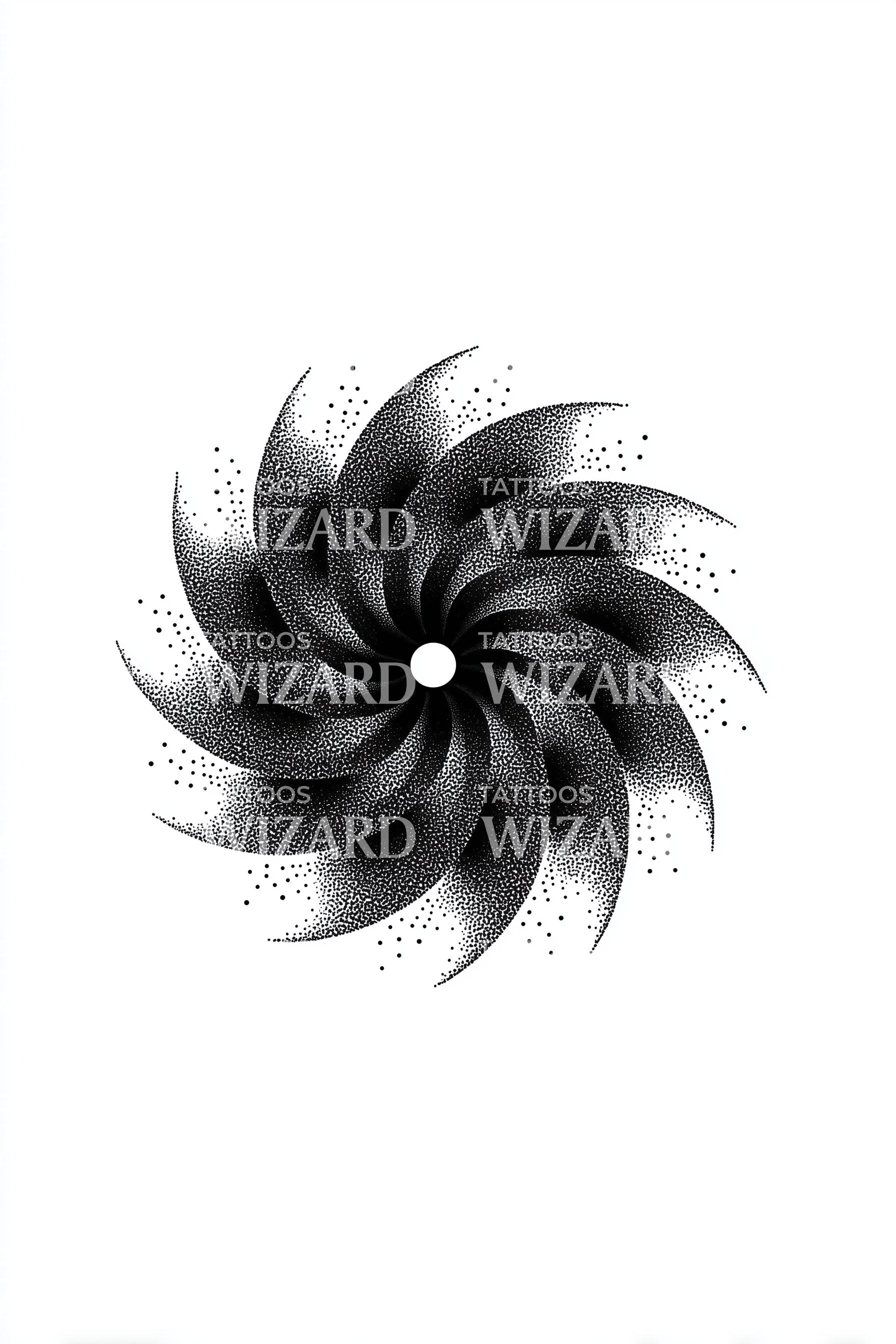 Ощутите красоту природы и искусства с этим дизайном татуировки в стиле дотворк. Каждый лепесток, завиток и узор в виде вертушки тщательно выполнены до совершенства. Потрясающее сочетание цветов в технике дотворк с изысканными деталями, демонстрирующими вечную экологическую элегантность. Уникальный выбор для тех, кто ценит узорчатое телесное искусство.