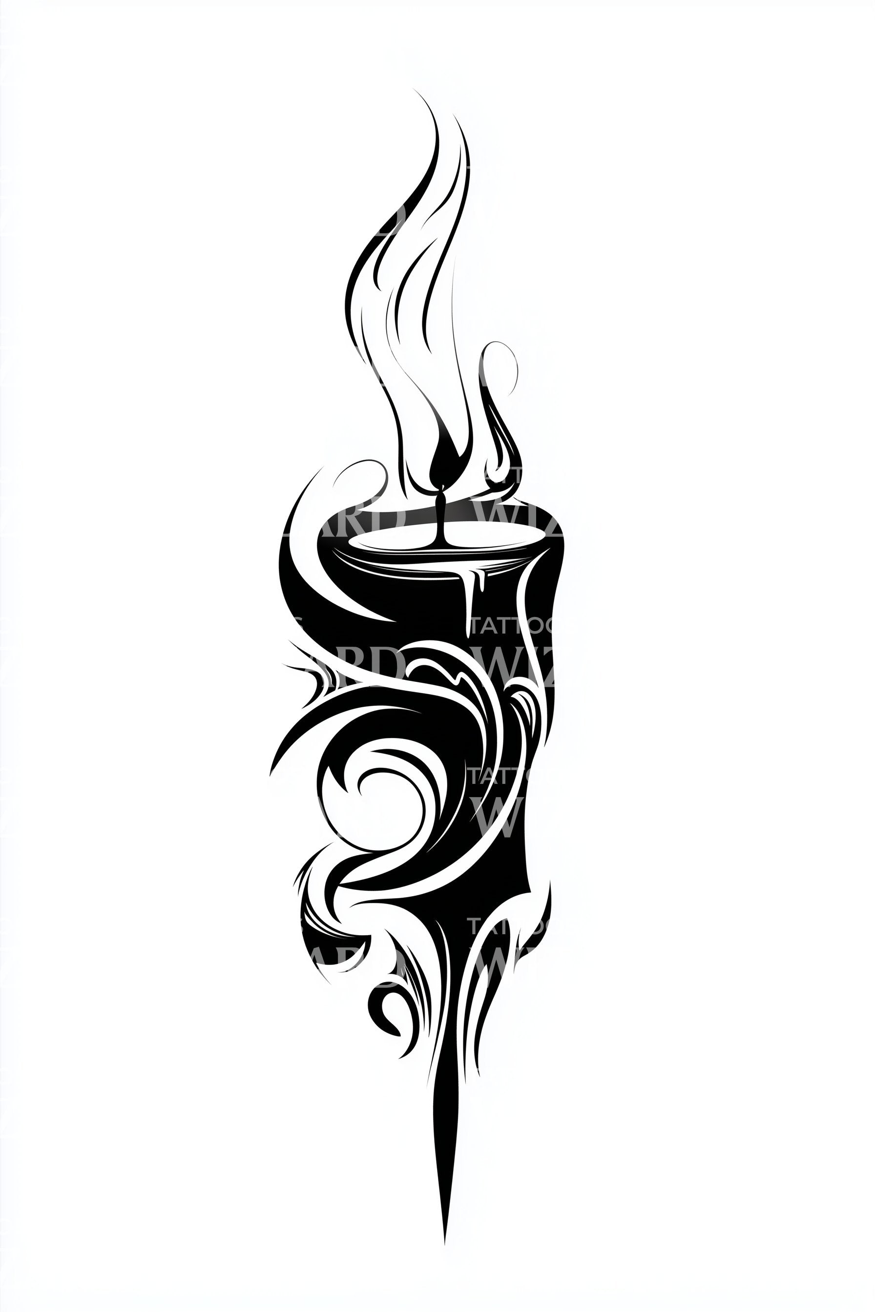 Освободите своего внутреннего мистика с нашим дизайном татуировки в стиле blackwork. Идеально вырезая племенной силуэт, этот эффектный рисунок изображает факел, окутанный загадочным дымом. Его смелая чёрная эстетика передаёт таинственное очарование неизвестного, делая его выразительным заявлением личных историй.