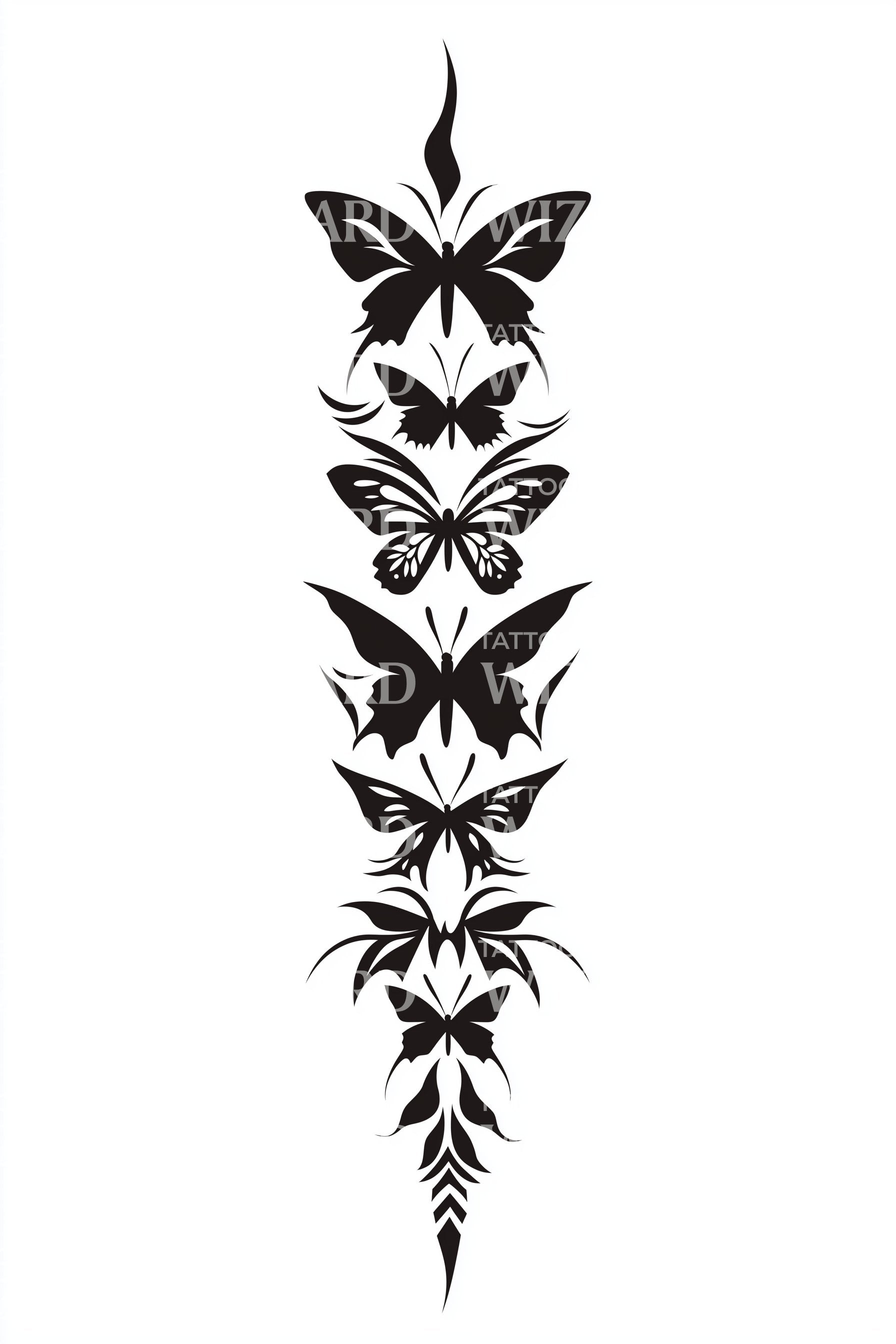 Погрузитесь в древние легенды с этим дизайном татуировки в стиле племени. В центре внимания — величественная тотемная маска, сложные племенные символы и тонкие цветочные элементы, выполненные в эффектном вертикальном формате. Это мощное воплощение первобытной красоты, идеально подходящее для тех, кто ценит племенную эстетику.
