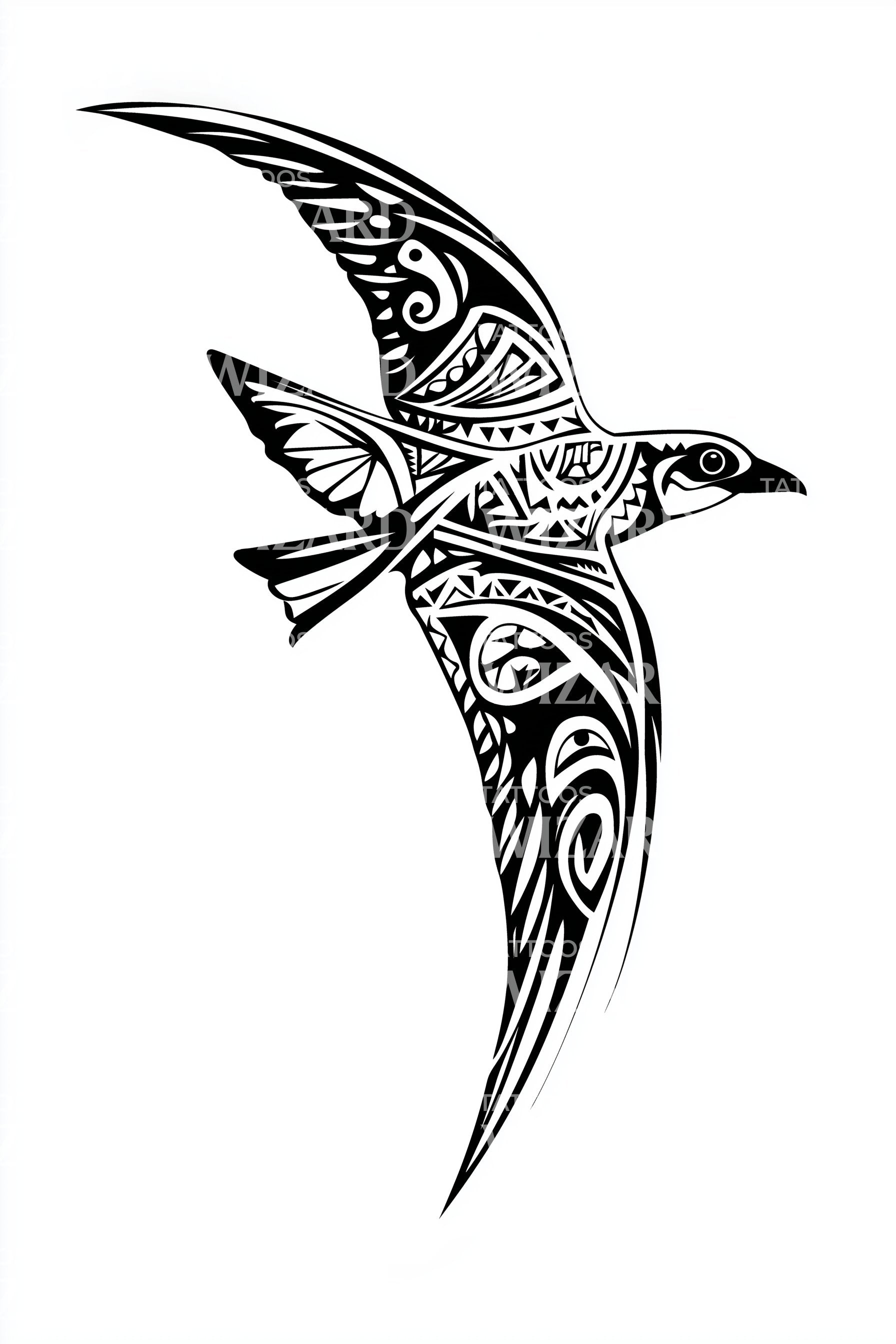 Излучая ауру неукротимой свободы, этот тату-дизайн с племенной птицей символизирует полёт в открытом небе. Его уникальные изогнутые узоры придают художественный шарм, таинственно вплетённый в абстрактную племенную тему. Идеально подходит для тех, кто ощущает связь со свободой, дикой природой и неограниченной красотой природы.