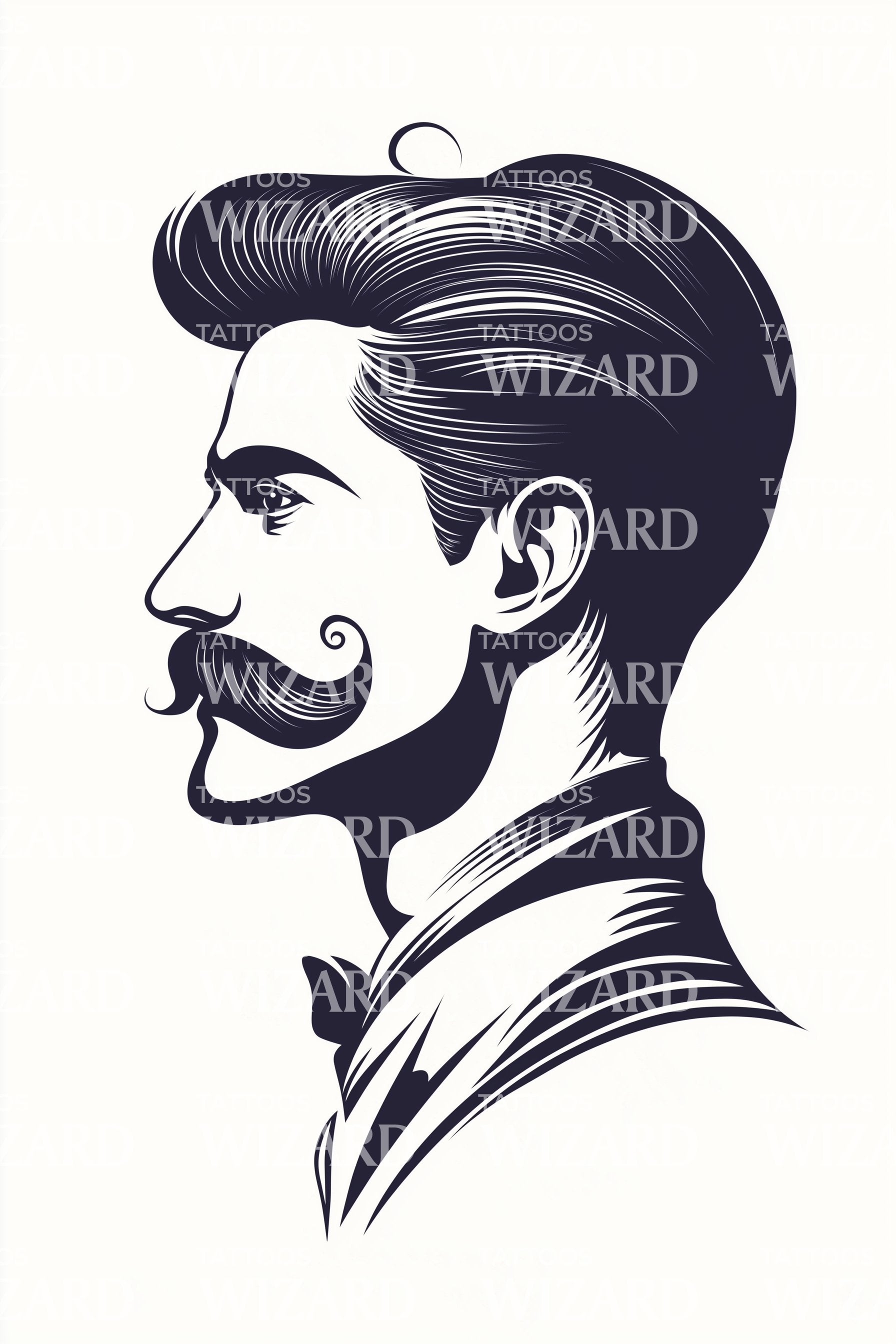 Окунитесь в винтажную элегантность с этим черно-серым тату-дизайном в джентльменском стиле. Изящный портрет с модными ретро-усами — это мощный отсыл к изысканному обаянию прошлых эпох. Идеально подходит современному мужчине, ценящему оттенок старинного шарма.
