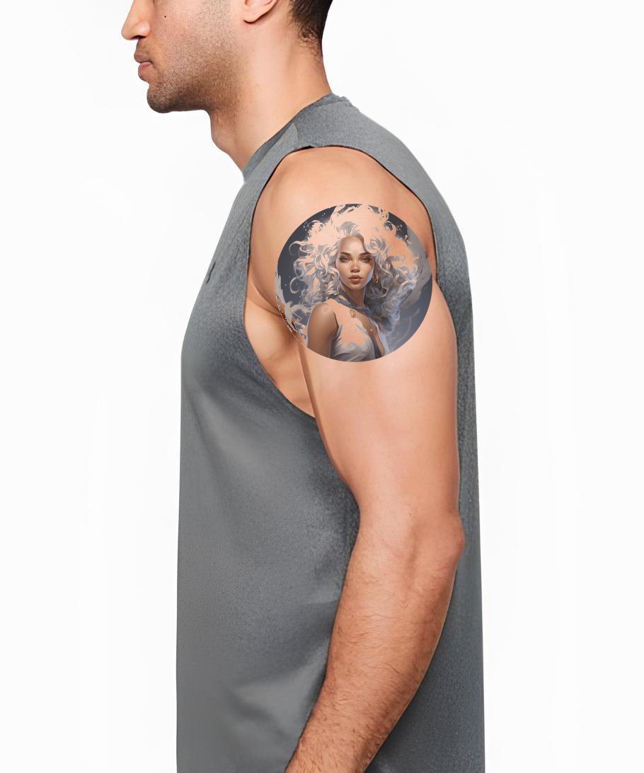Presenterar en elektrifierande blandning av Marvels kraftfulla superhjältinna, Storm, i en anime-adaption. Denna sexiga, illustrativa tatuering kombinerar intensitet och feminin charm, perfekt för dig som vill förkroppsliga modet hos heroina kvinnor med en unik touch av japansk animationsestetik.